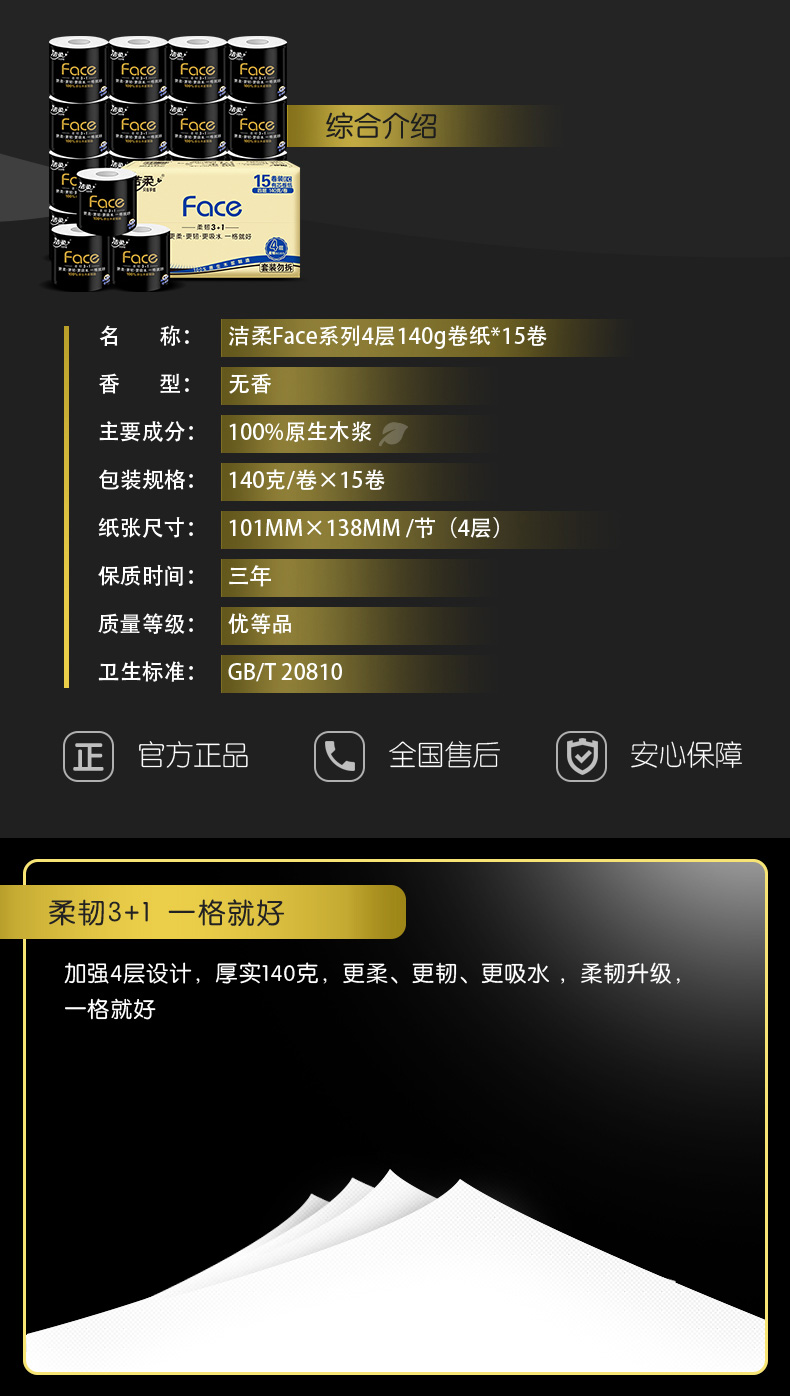 商品名称:洁柔卷纸卫生纸纸巾家用实惠装140g卷筒纸厕纸整箱15卷