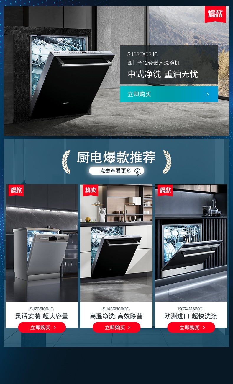 SIEMENS/西门子进口嵌入式全自动10套除菌洗碗机SC454B08