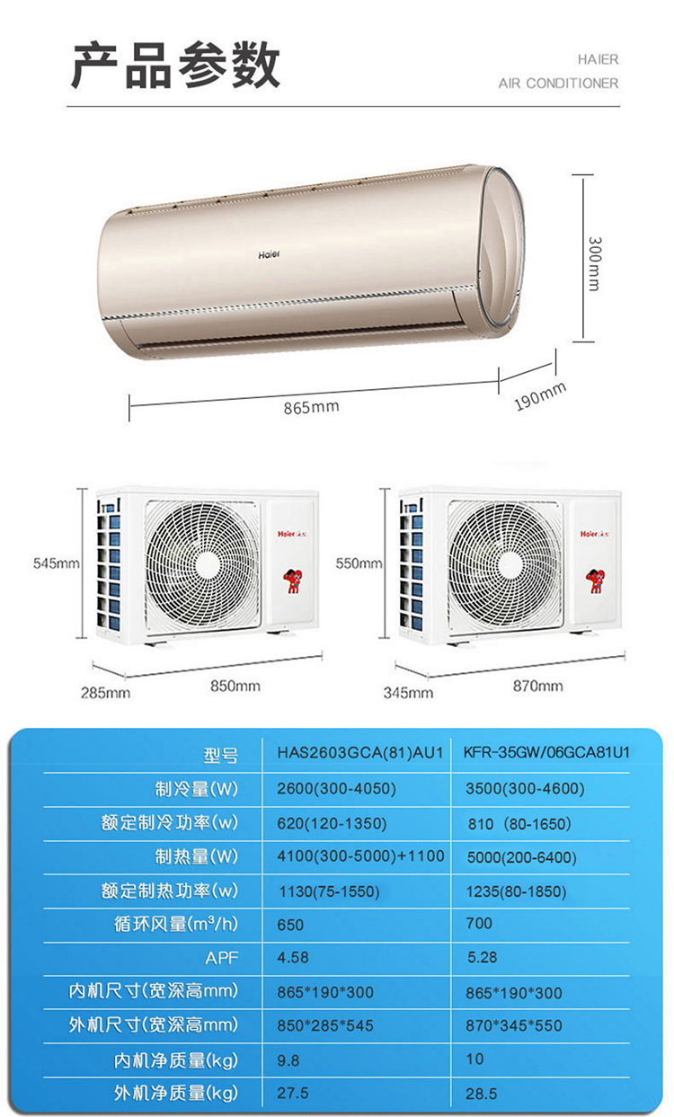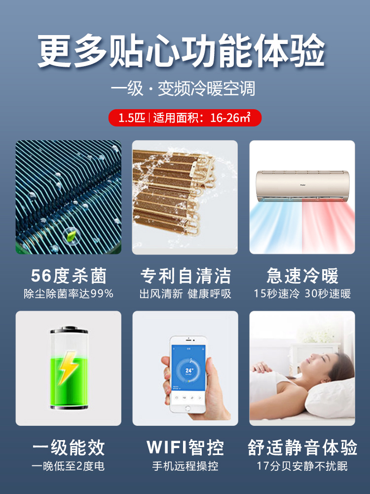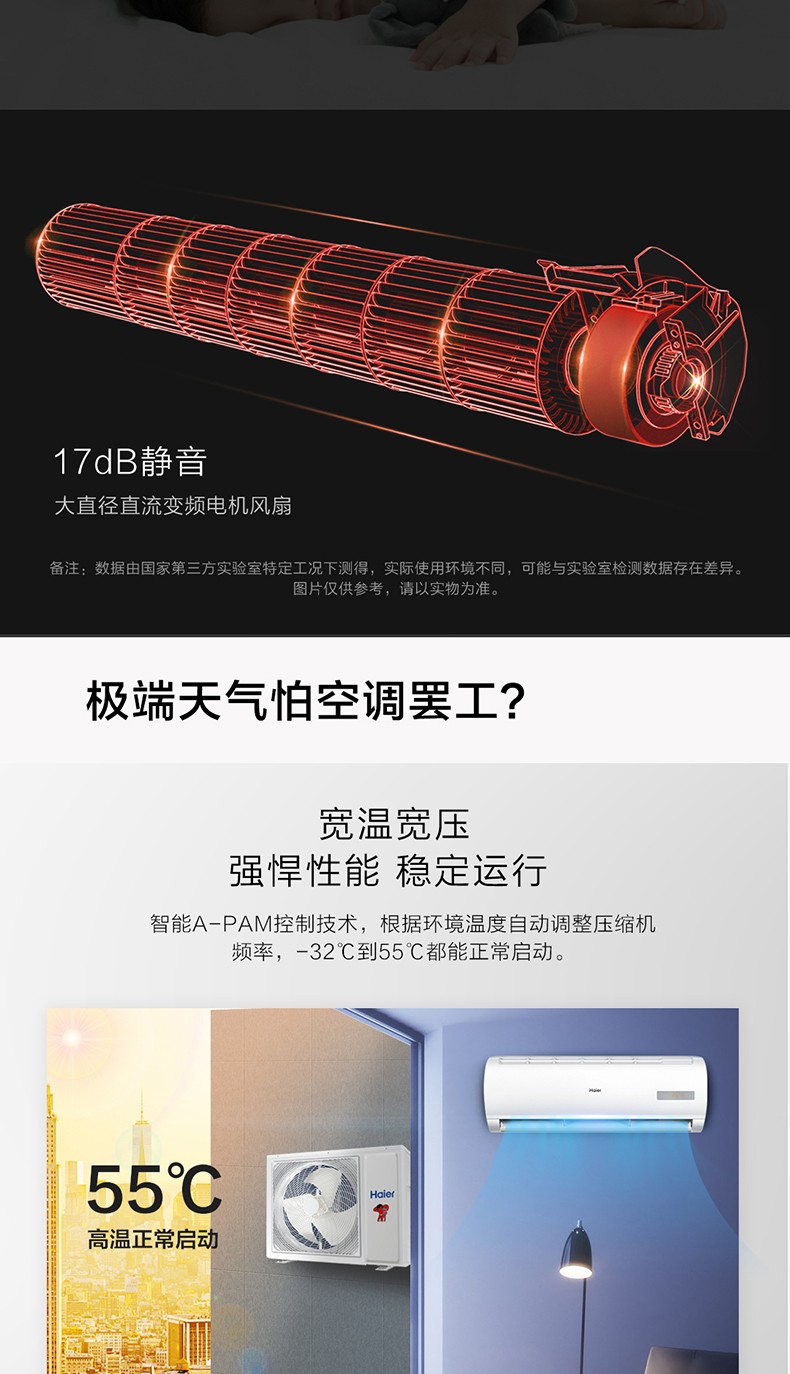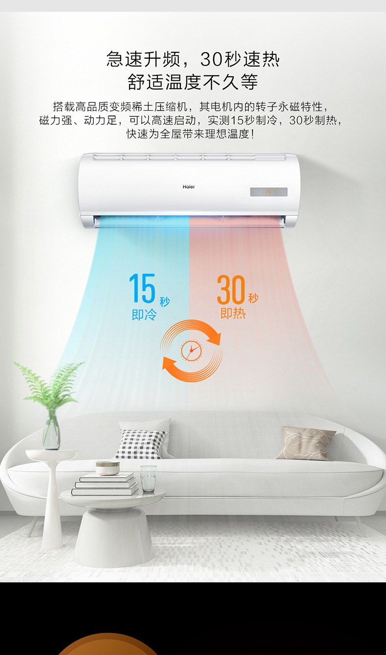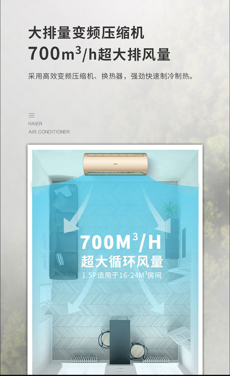 商品名称:海尔空调一级能效大1匹2匹06EDS81家用变频节能冷暖挂机06GCA81U1