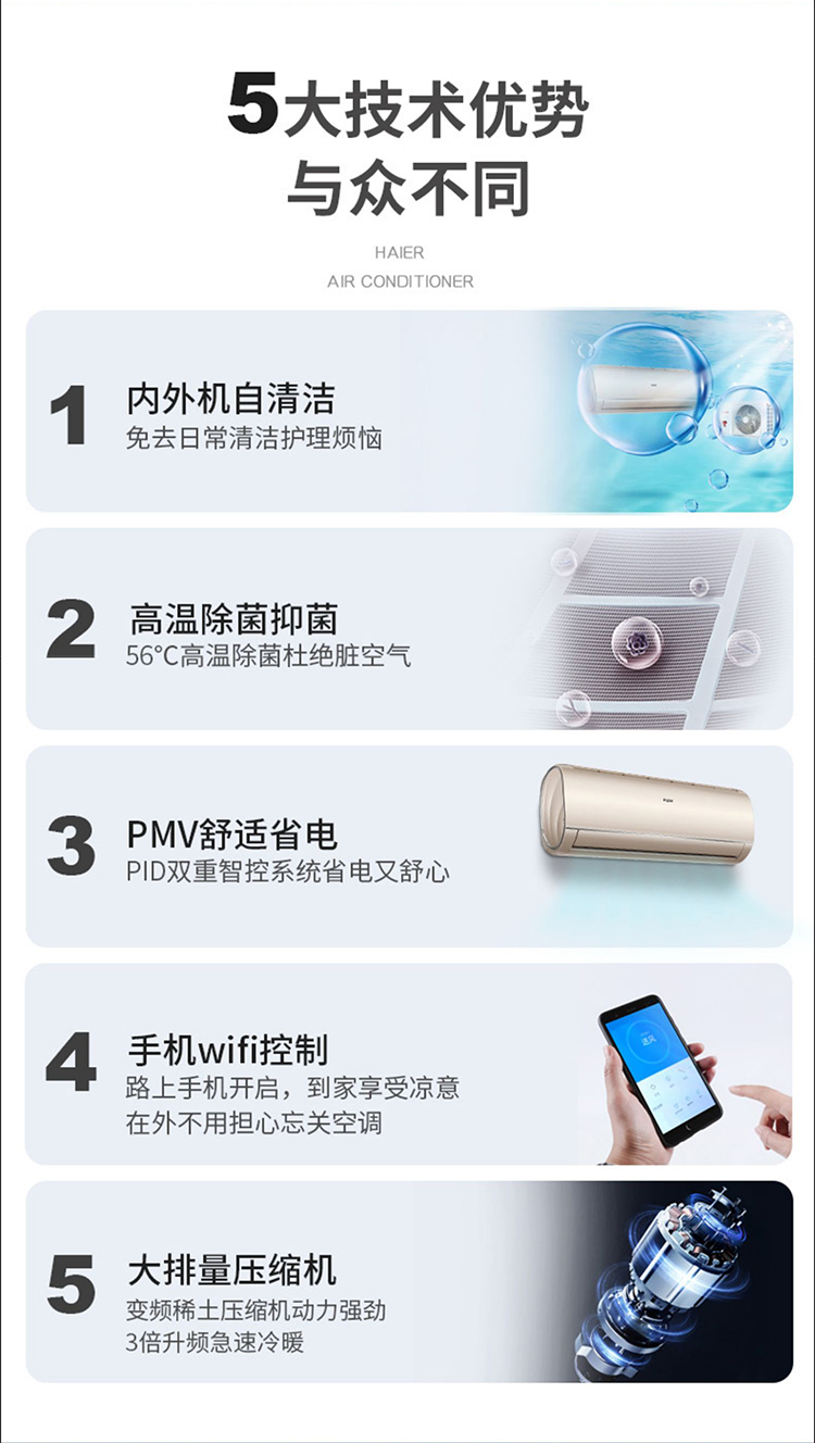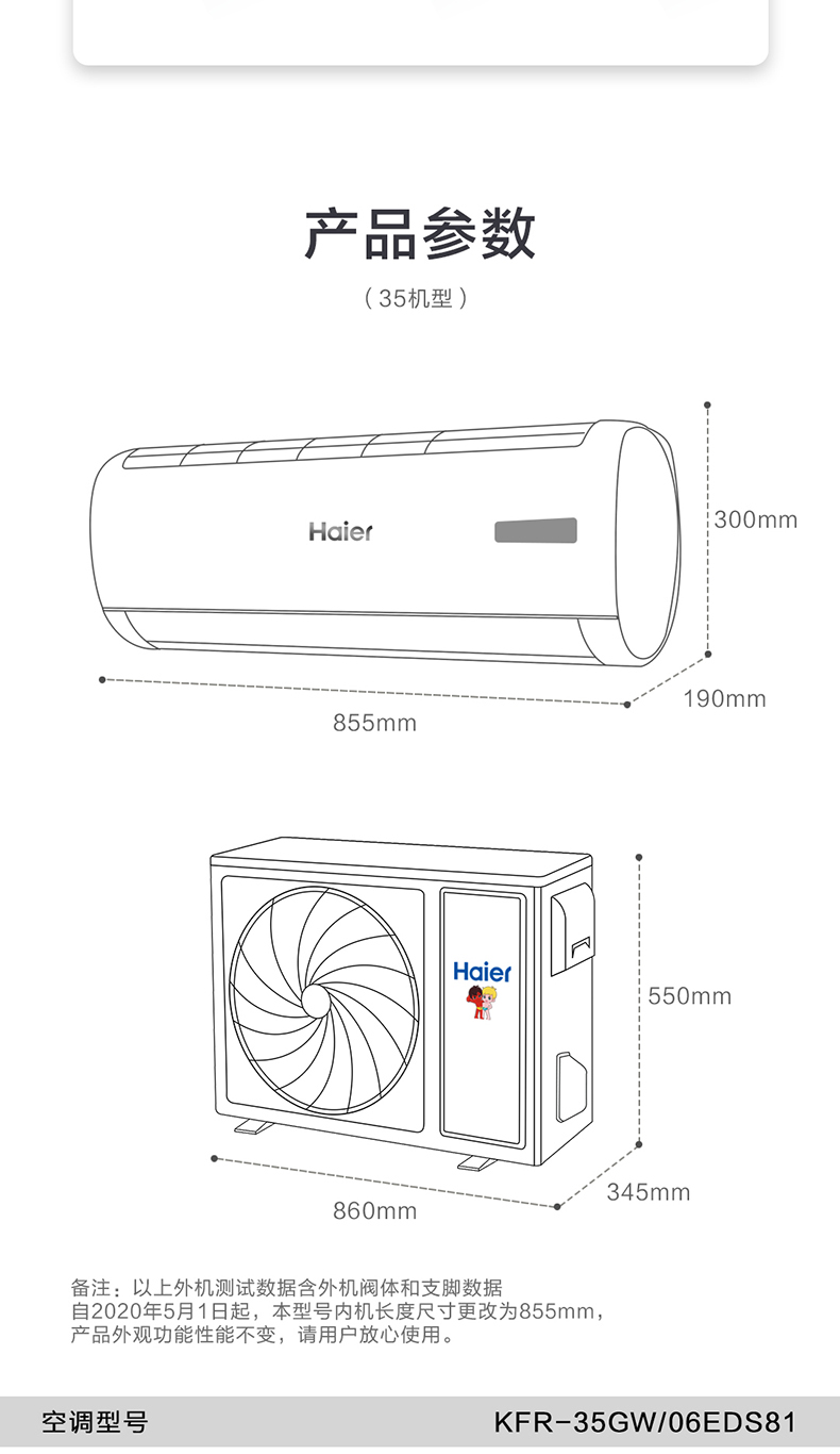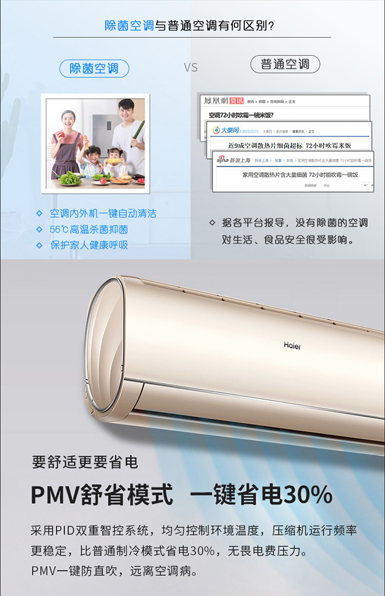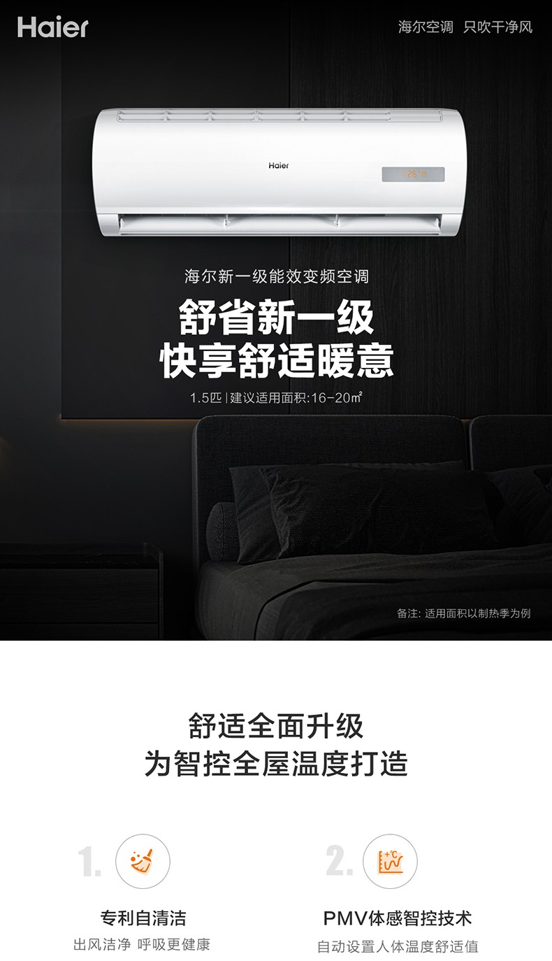商品名称:海尔空调一级能效大1匹2匹06EDS81家用变频节能冷暖挂机06GCA81U1