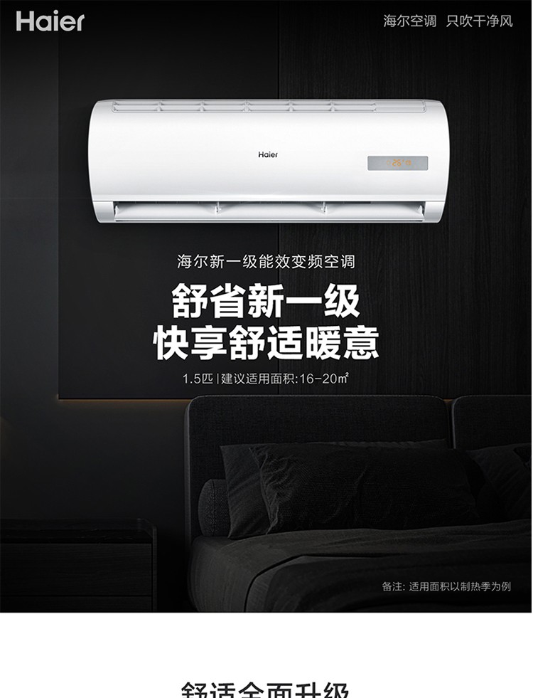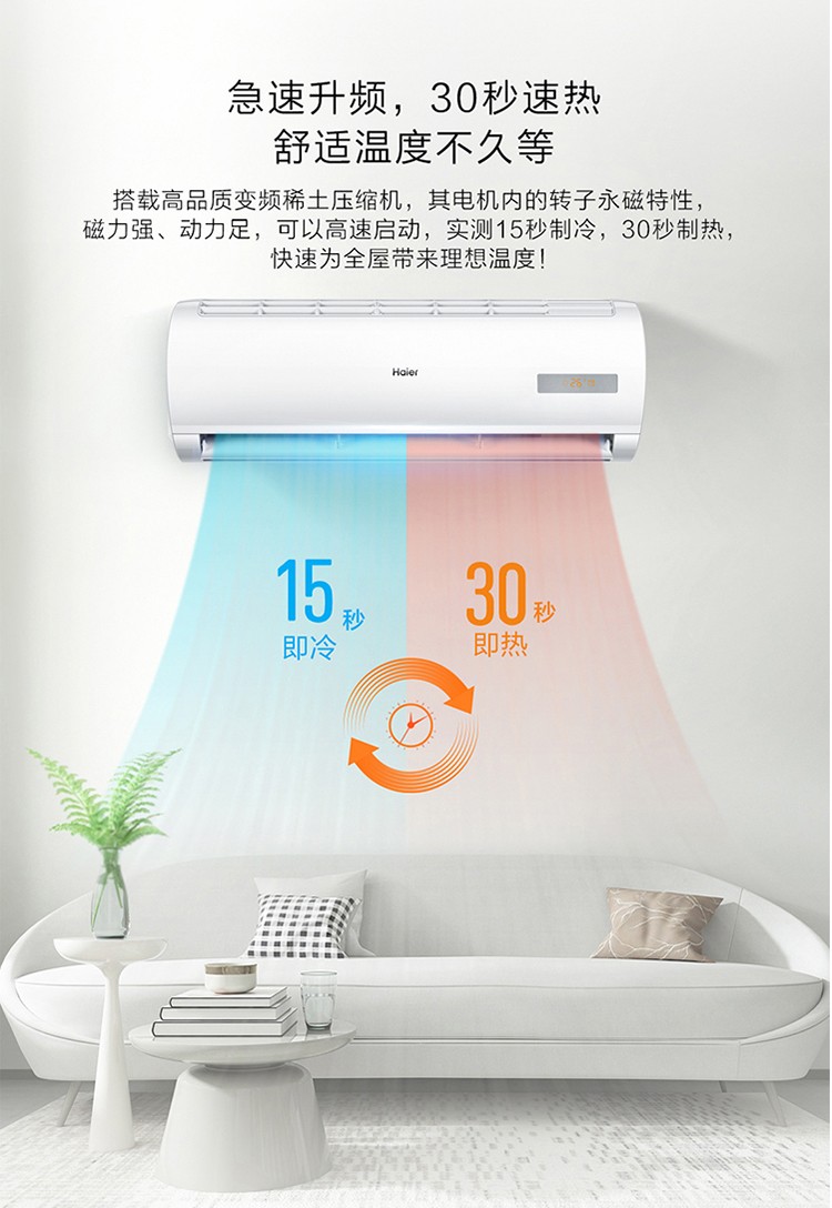 商品名称:海尔新一级能效大1匹/1.5匹2P变频冷暖节能家用壁式挂机空调EDS81