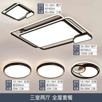 商品名称:四季沐歌照明 【可包安装】led吸顶灯灯具套餐客厅卧室灯北欧后现代简约灯饰 全屋套餐A-三室两厅客厅120瓦三色调光