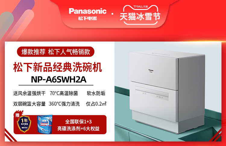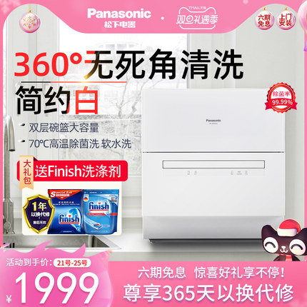 Panasonic松下洗碗机全自动家用小型独立台式6套免安装除菌刷碗机