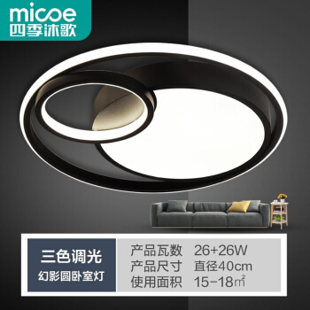 商品名称:四季沐歌照明 轻奢卧室灯客厅吸顶灯led后现代北欧大气简约 双圆/26*2W/三色调光/直径40cm