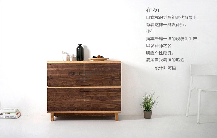 商品名称:[植木生活]北欧餐边柜家具原木茶水柜黑胡桃橡木日式实木储物柜子