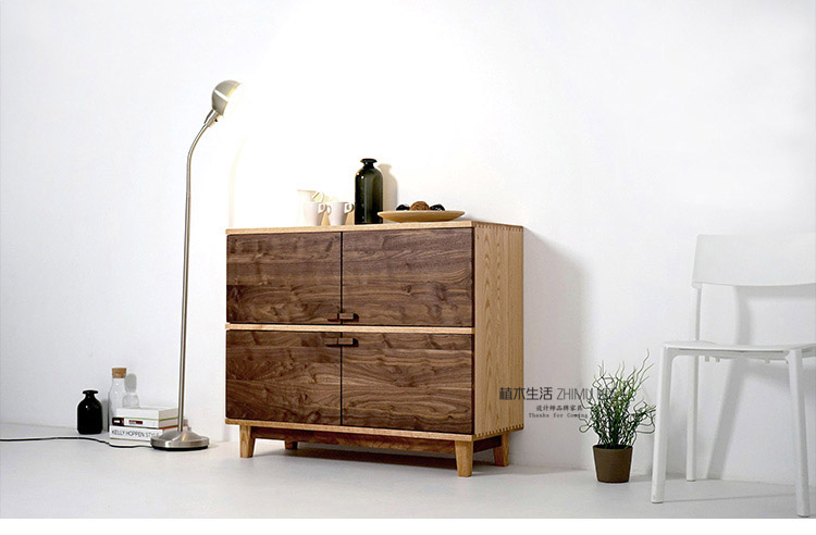 [植木生活]北欧餐边柜家具原木茶水柜黑胡桃橡木日式实木储物柜子
