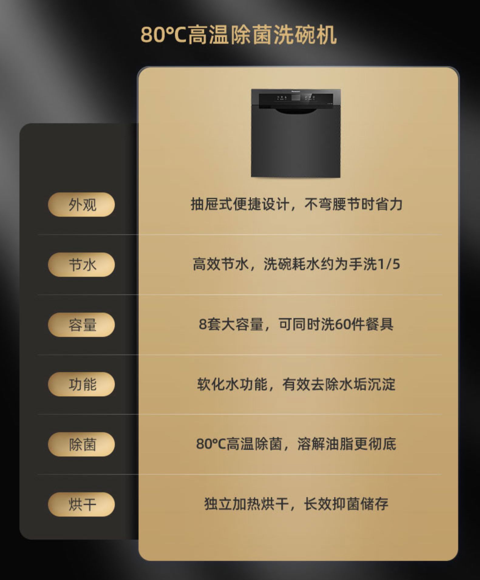 商品名称:松下NP-60F1MKA全自动家用8套抽屉嵌入式高温洗涤除菌烘干洗碗机
