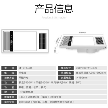 商品名称:四季沐歌(MICOE)多功能五合一集成吊顶风暖浴霸卫生间浴霸灯大功率浴室取暖器LED照明换气暖风 五合一多功能风暖浴霸