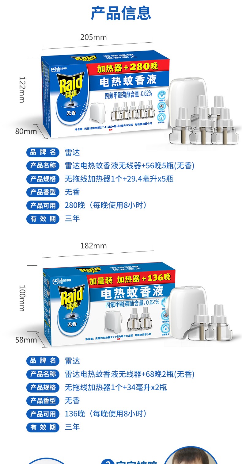 商品名称:雷达电热蚊香液插电式家用夏天驱蚊灭蚊416晚2个加热器电蚊液两室