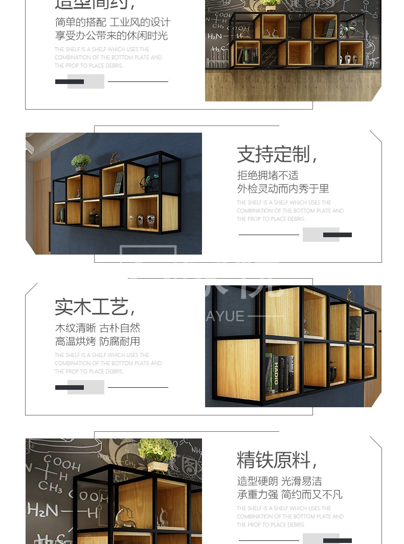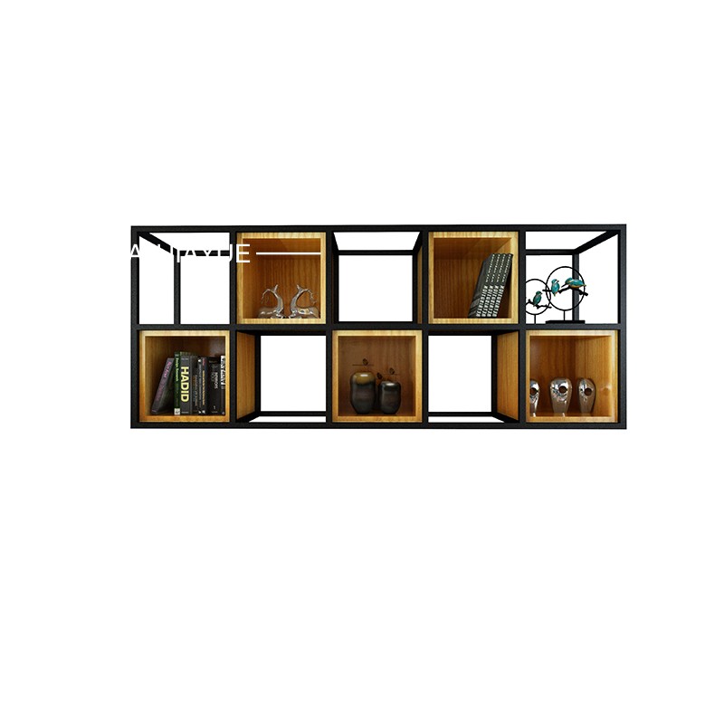 万家悦loft铁艺墙上装饰置物架多层格子书架实木墙面花架子挂墙