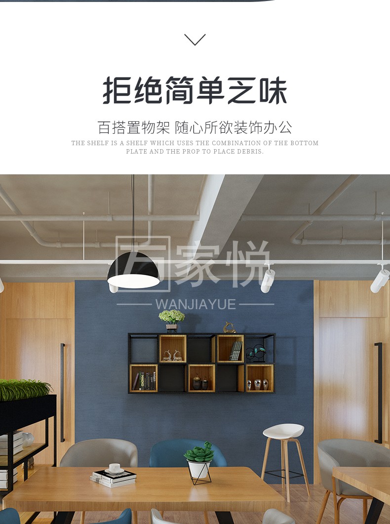 商品名称:万家悦loft铁艺墙上装饰置物架多层格子书架实木墙面花架子挂墙