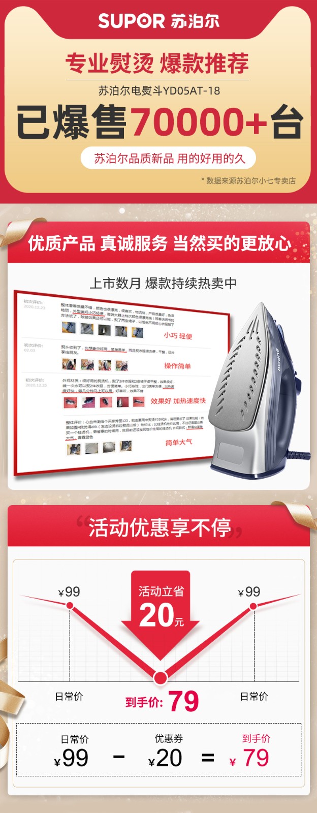 商品名称:苏泊尔手持电熨斗家用蒸汽小型熨烫机烫衣服神器烫斗干湿两用运平