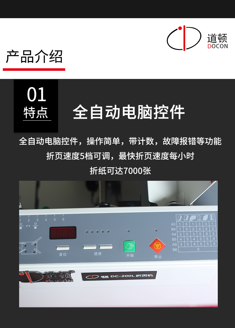 商品名称:道顿 DC-200L A3幅面 全自动折页折纸机 说明书 证书 文件 彩页 报告 折页折纸叠图叠纸机