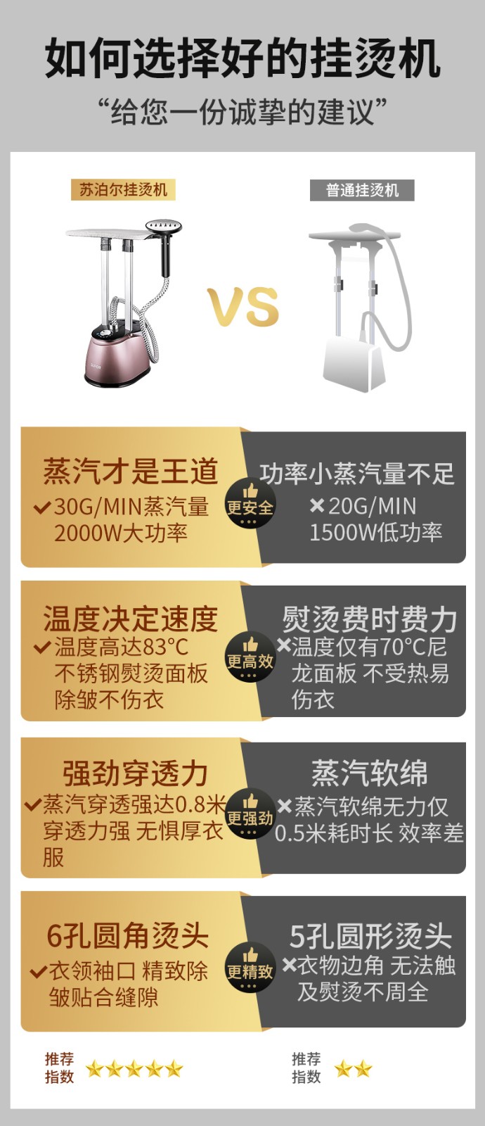苏泊尔挂烫机家用小型熨烫机手持蒸汽熨斗挂衣烫机大功率电熨斗 2000W大功率十档智能调温 双杆更稳固