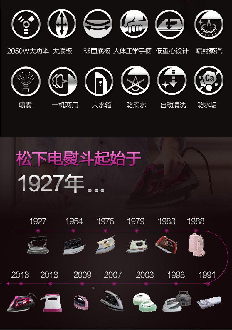 商品名称:松下电熨斗家用蒸汽手持式大功率大蒸汽干湿两用电烫斗NI-U401C