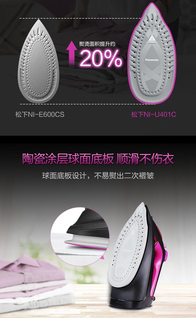 松下电熨斗家用蒸汽手持式大功率大蒸汽干湿两用电烫斗NI-U401C