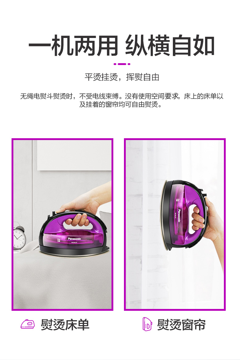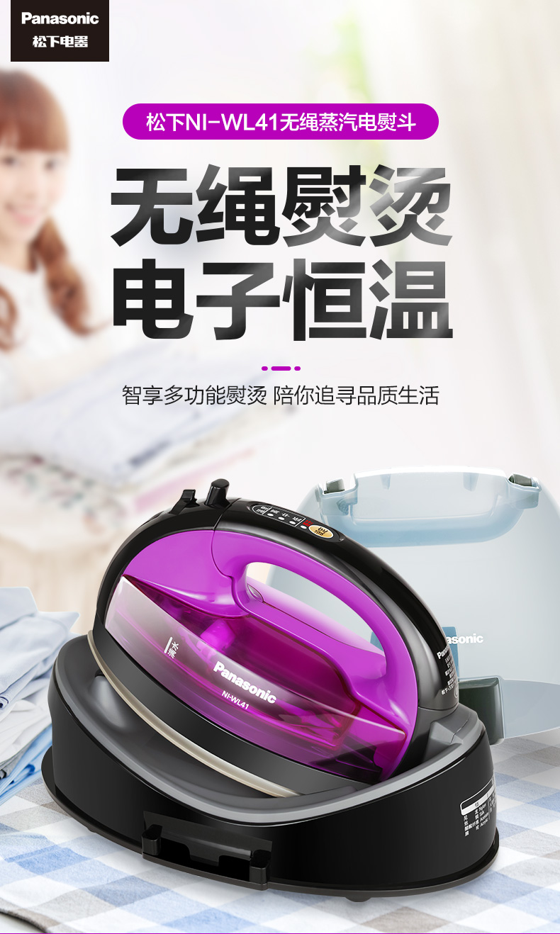 商品名称:松下电熨斗家用无绳WL41手持式便携蒸汽无线小型迷你蒸汽式熨斗 迷你无绳电子感应恒温垂直熨烫防漏水便携式