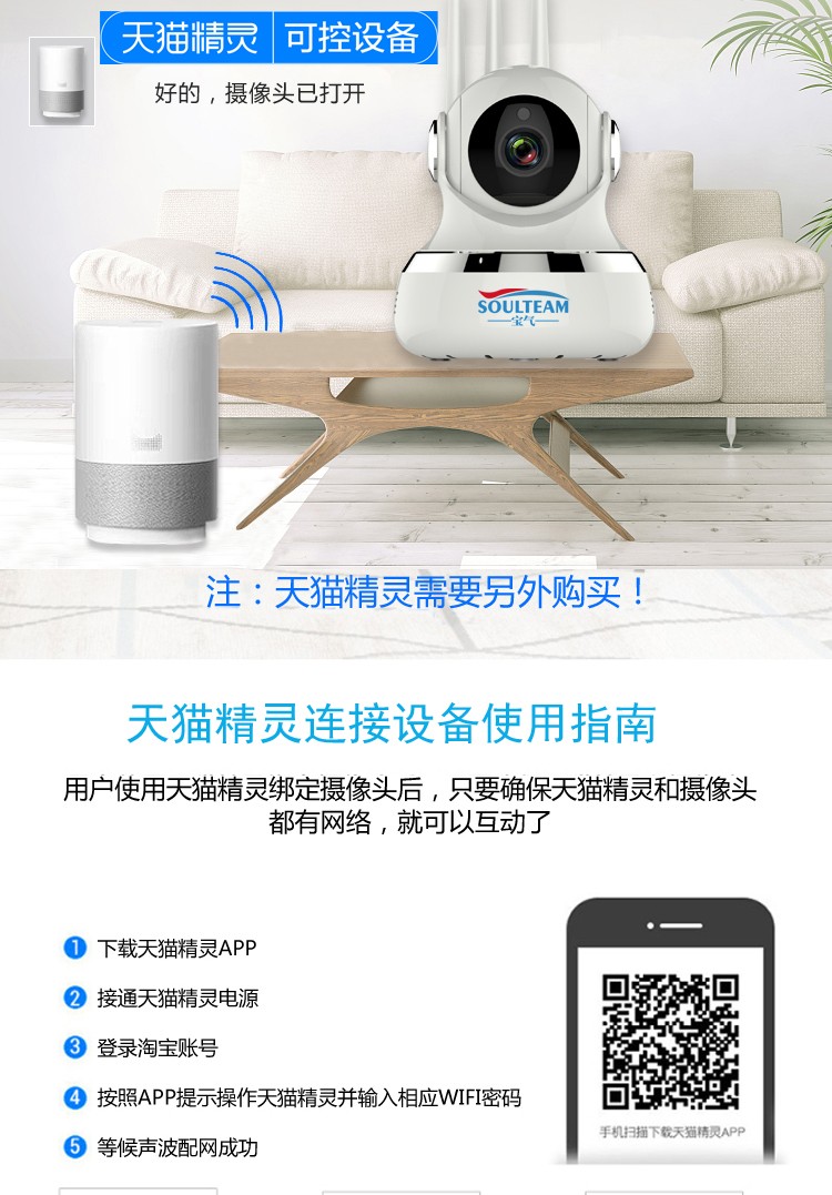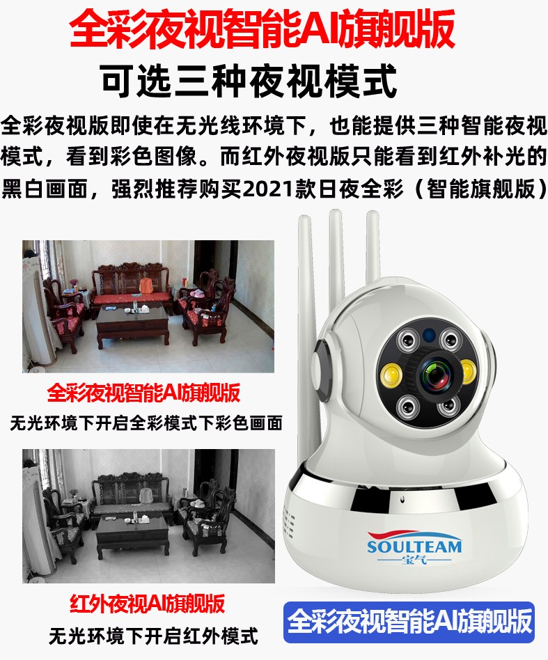 商品名称:宝气 360度全景摄像头wifi监控器手机无线网络远程家用夜视高清