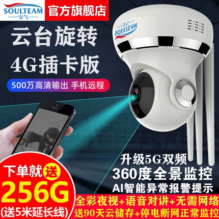 宝气360度全景摄像头连手机远程高清夜视无线家用4G监控器无死角