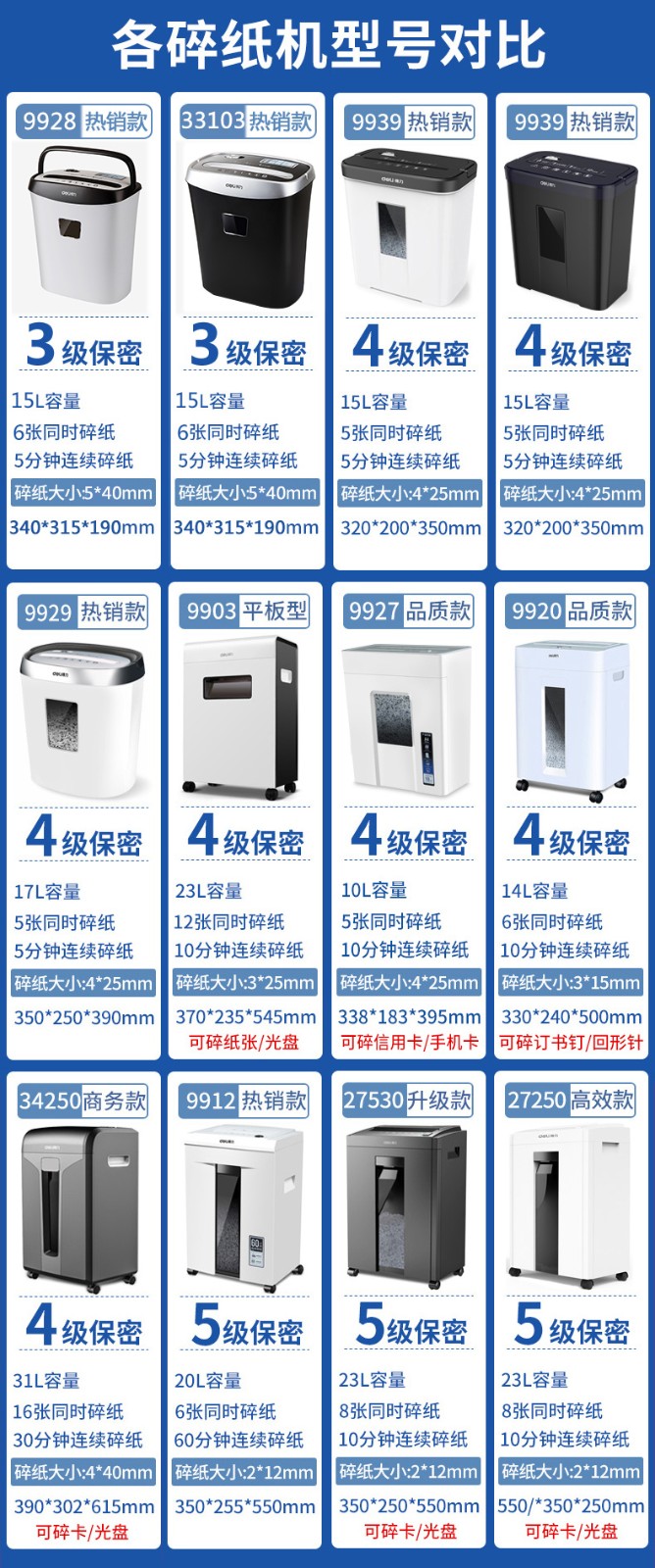商品名称:得力9951碎纸机商务型 粉碎机大功率 静音 粒状 16L三级保密