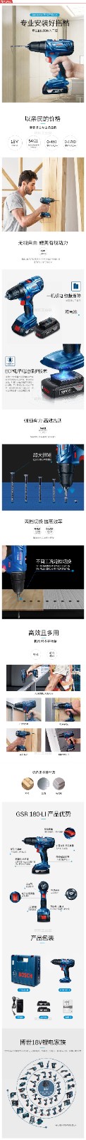 商品名称:博世(BOSCH) 锂电充电式电钻/起子机(2电1充 2.0Ah);GSR 180-LI