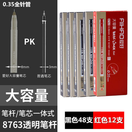 爱好100支装大容量中性笔签字笔黑色水笔碳素红笔巨能写黑笔学生用考试笔办公0.35mm全针管文具包邮黑色48支红色12支