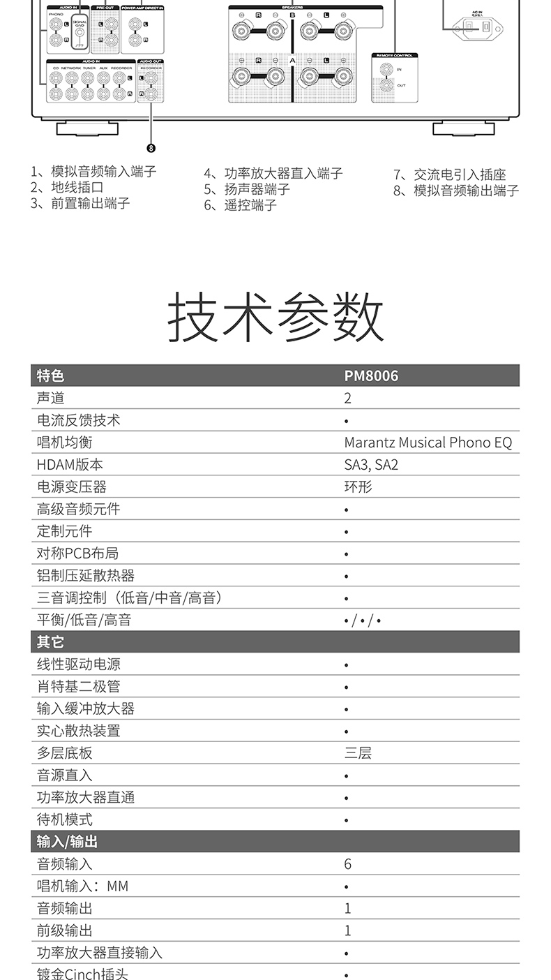 商品名称:日本进口Marantz/马兰士PM8006功放机家用音响hifi发烧数字功放