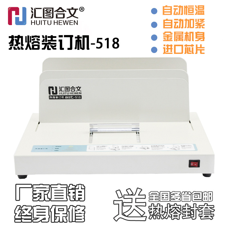 商品名称:汇图合文-518 热熔装订机A3/a4封套书本标书合同胶条自动胶装