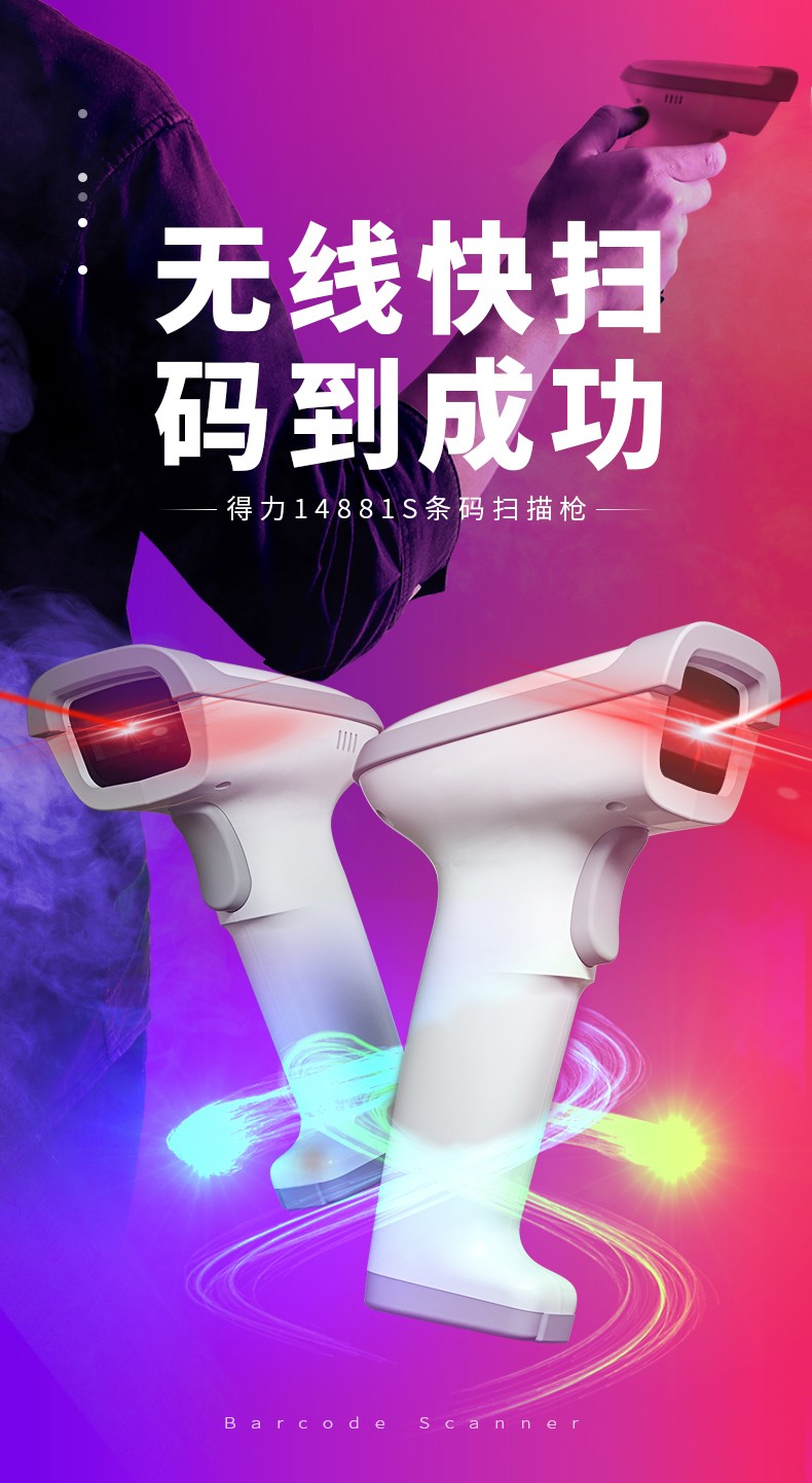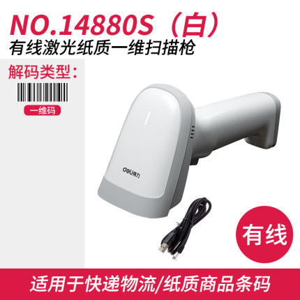商品名称:得力14881S手持扫描枪无线激光条码扫描枪 超市便利店物流快递仓库出入库扫码枪 盘点扫码枪巴枪扫描枪数据线