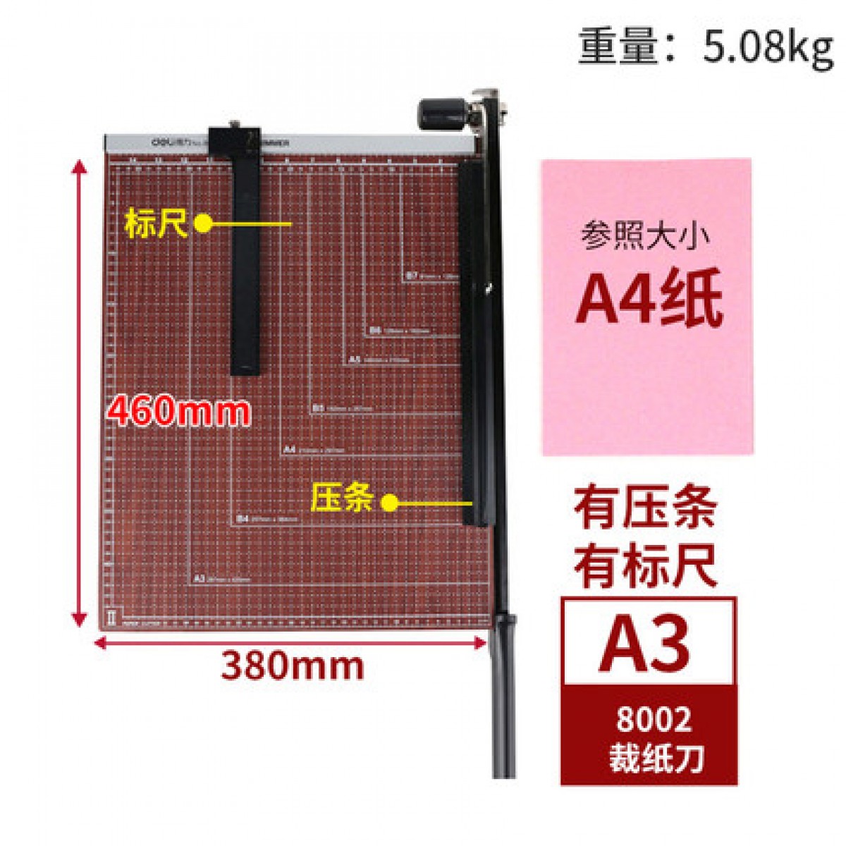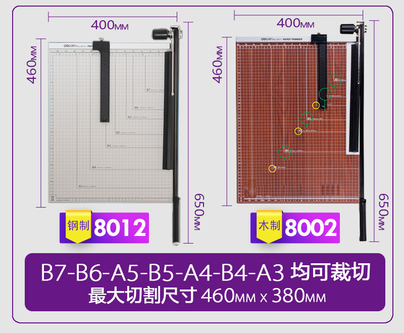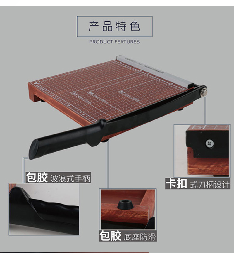 商品名称:得力A4切纸刀手动木制裁纸刀裁纸机a5切纸机小型相片照片的裁剪器A3办公钢质切纸器切刀铡刀闸刀财务切割8002裁纸刀