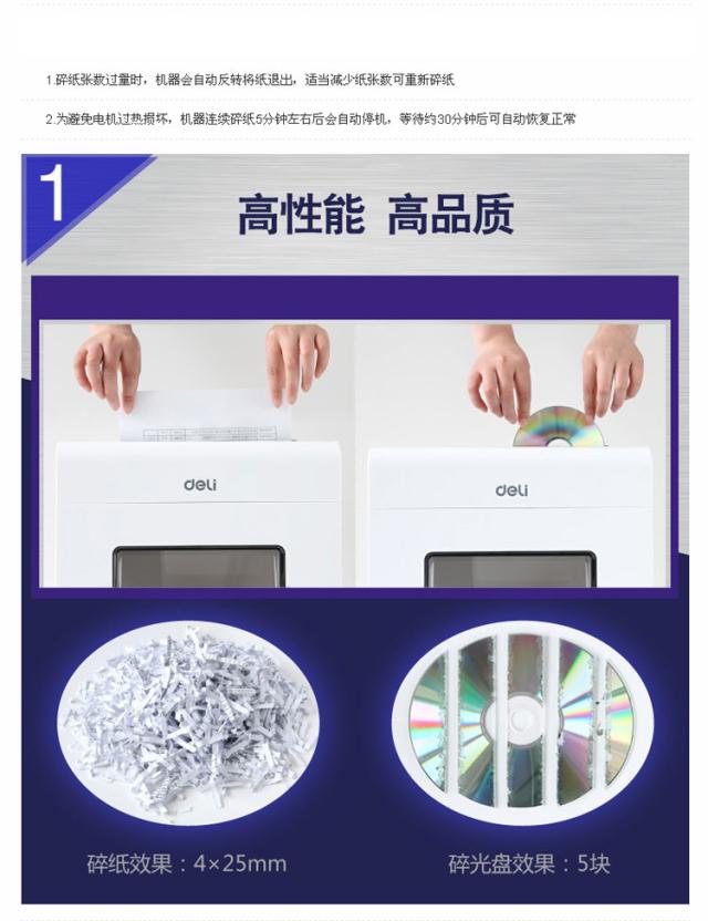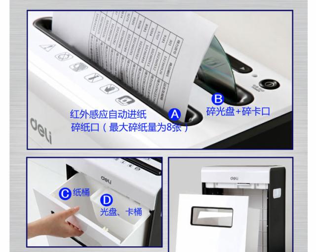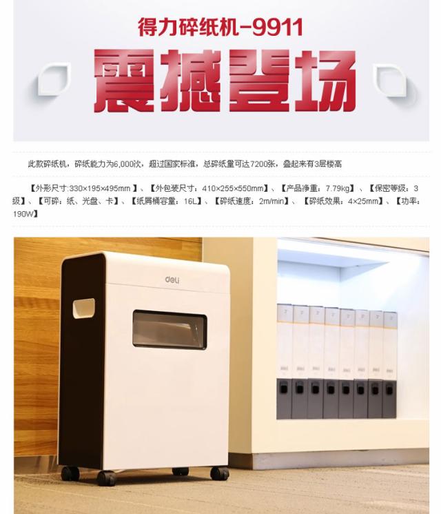 商品名称:得力9911碎纸机电动大功率办公家用碎卡碎光盘多功能粉碎机