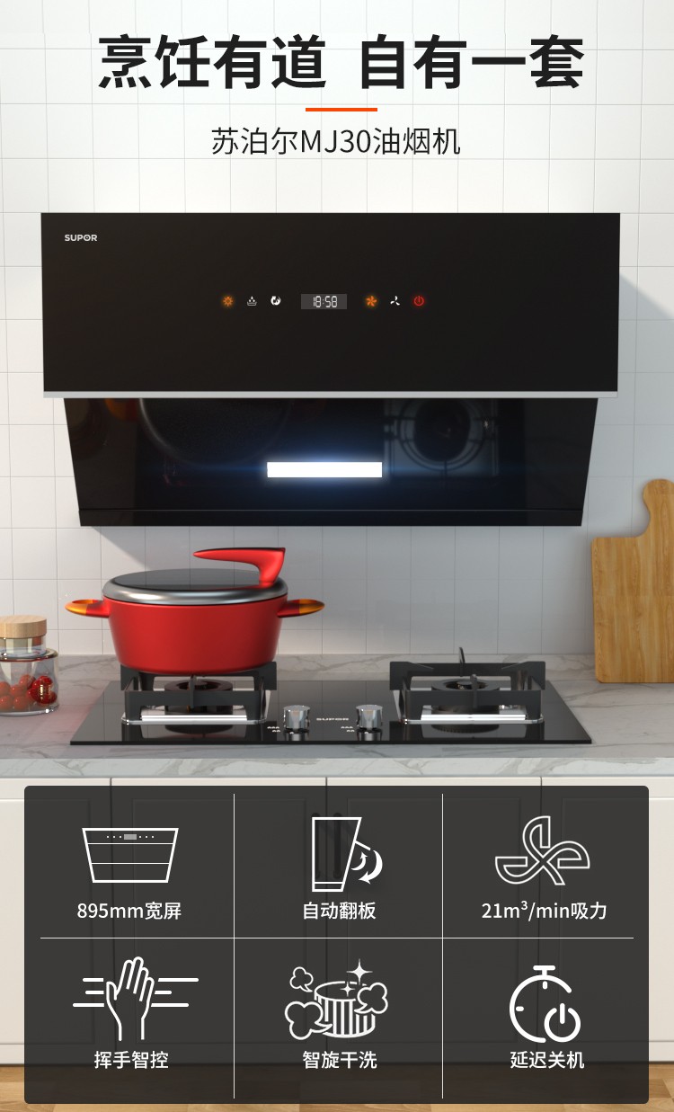 苏泊尔 MJ30吸抽油烟机家用厨房自动清洗侧吸式大吸力排油姻畑机