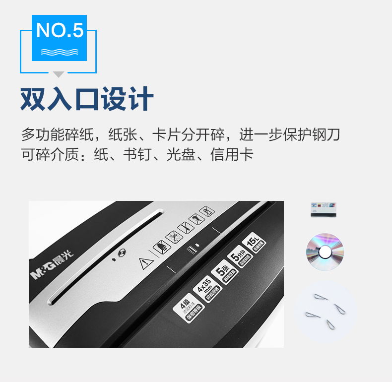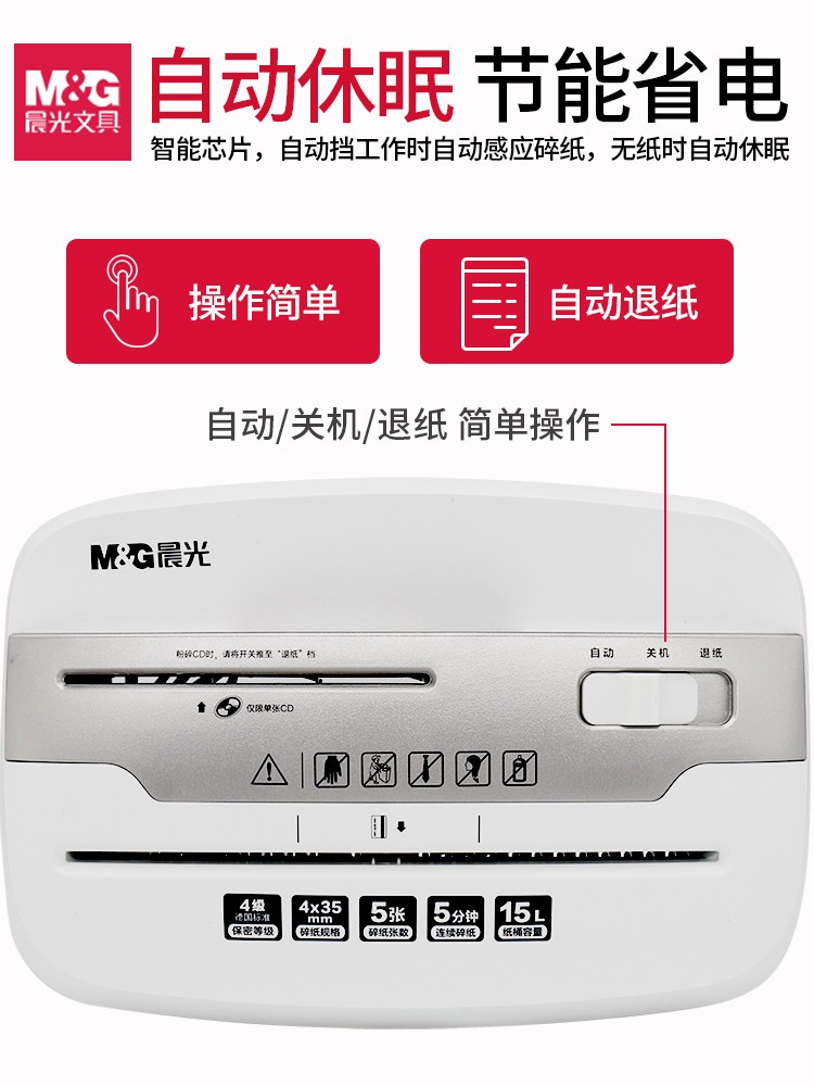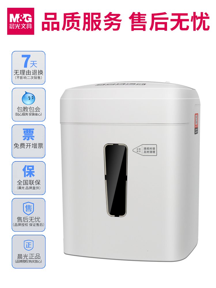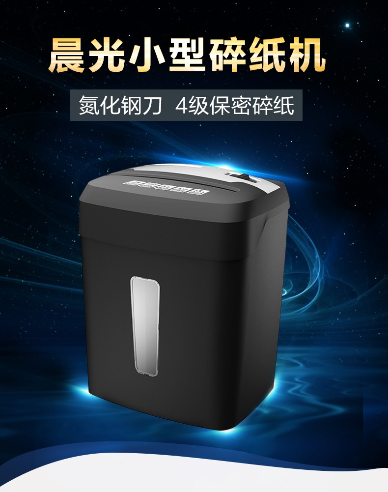 商品名称:晨光碎纸机办公室用小型家用电动大功率容量自动粉碎机四级保密碎卡光盘桌面文件五纸张颗粒迷你便携4级商用
