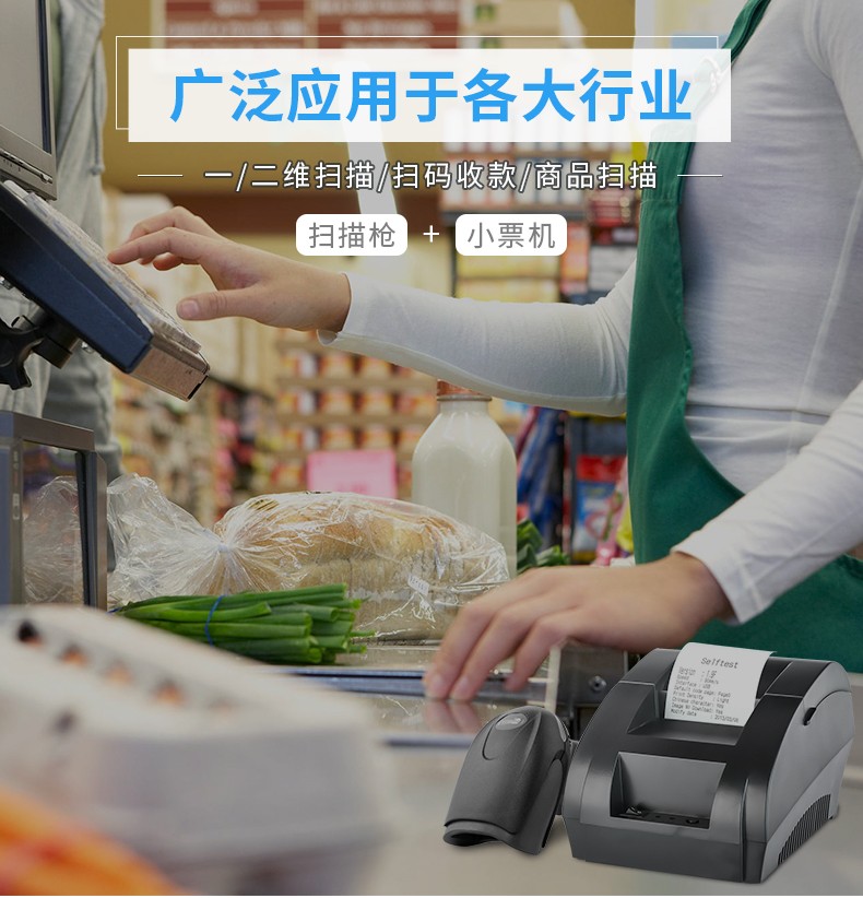 逊镭扫描枪无线条码枪商超市热敏打印机58mm红光有线一维二维码收银扫码枪扫描器微信支付宝支付二维扫码枪