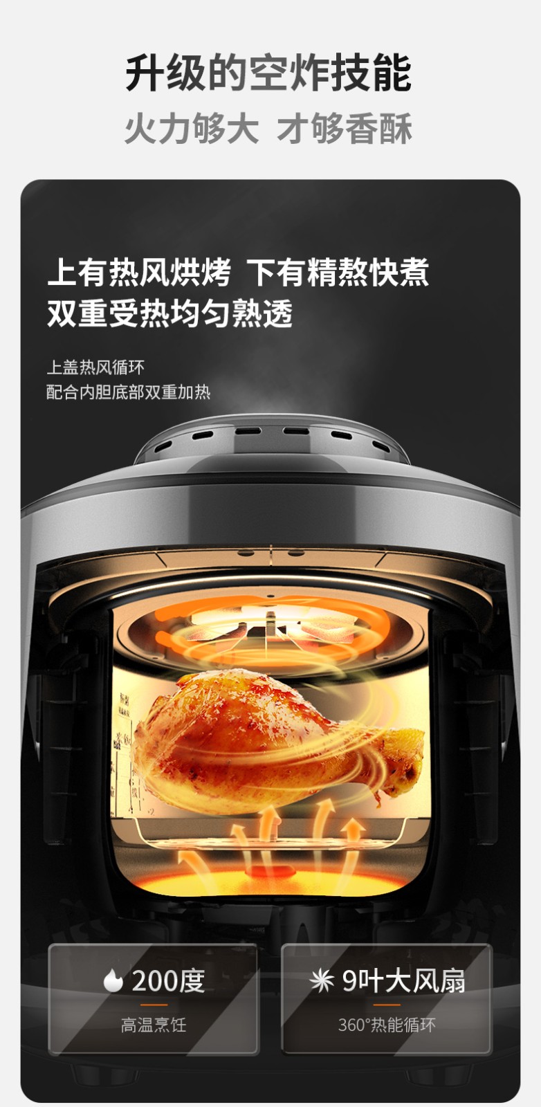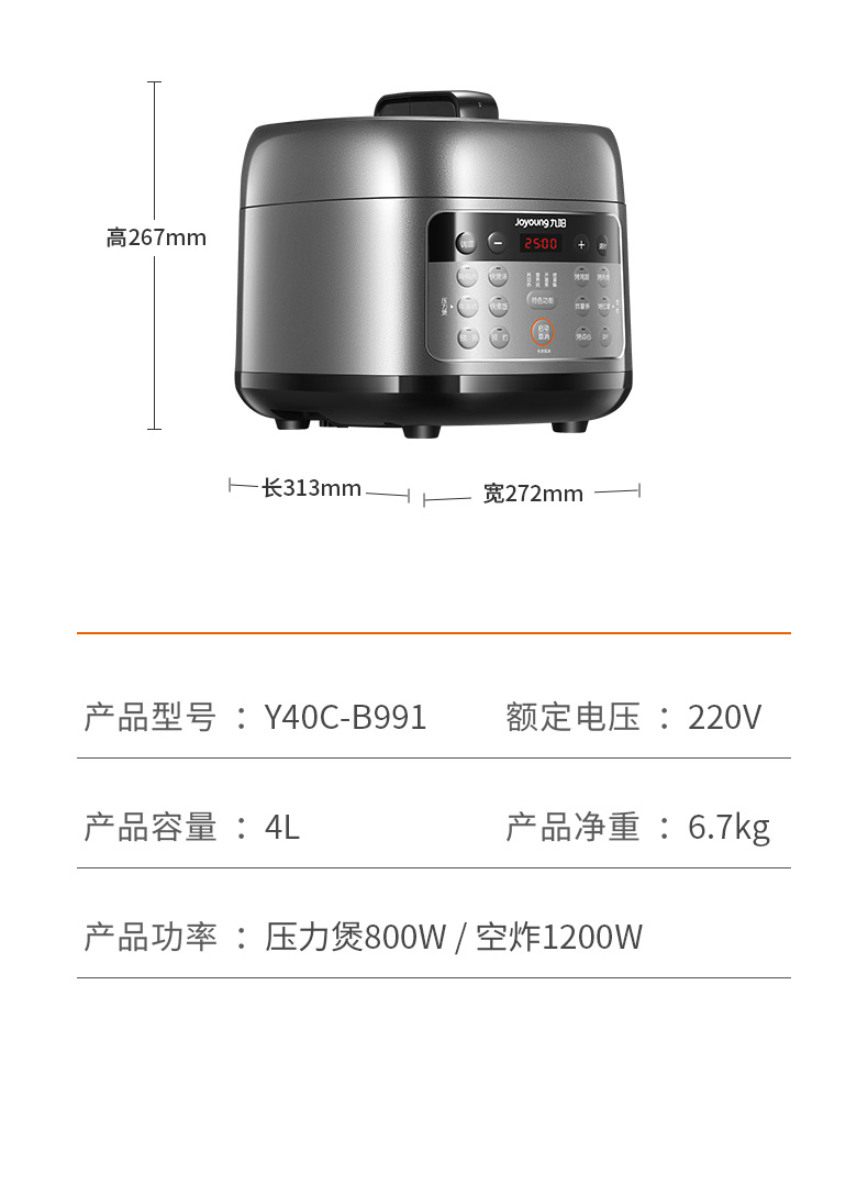 商品名称:九阳电压力锅家用空气炸锅高压锅饭煲4L升官方旗舰店正品新款B991