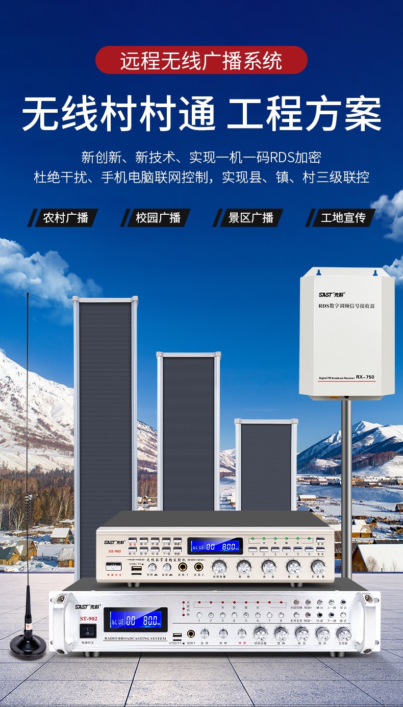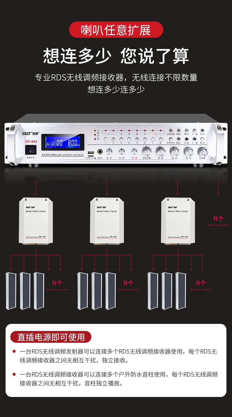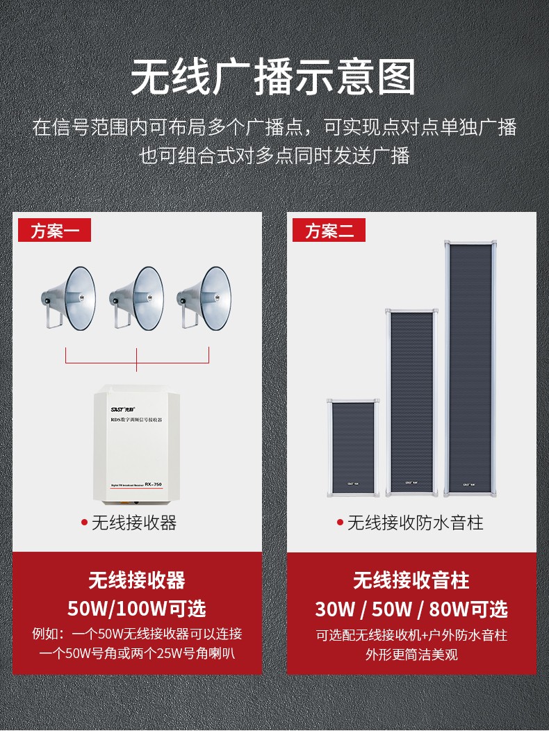 先科无线调频广播系统室外防水雨音柱户外壁挂功放工程方案村村通农村喇叭景区学校园IP主机音响4G音箱套装