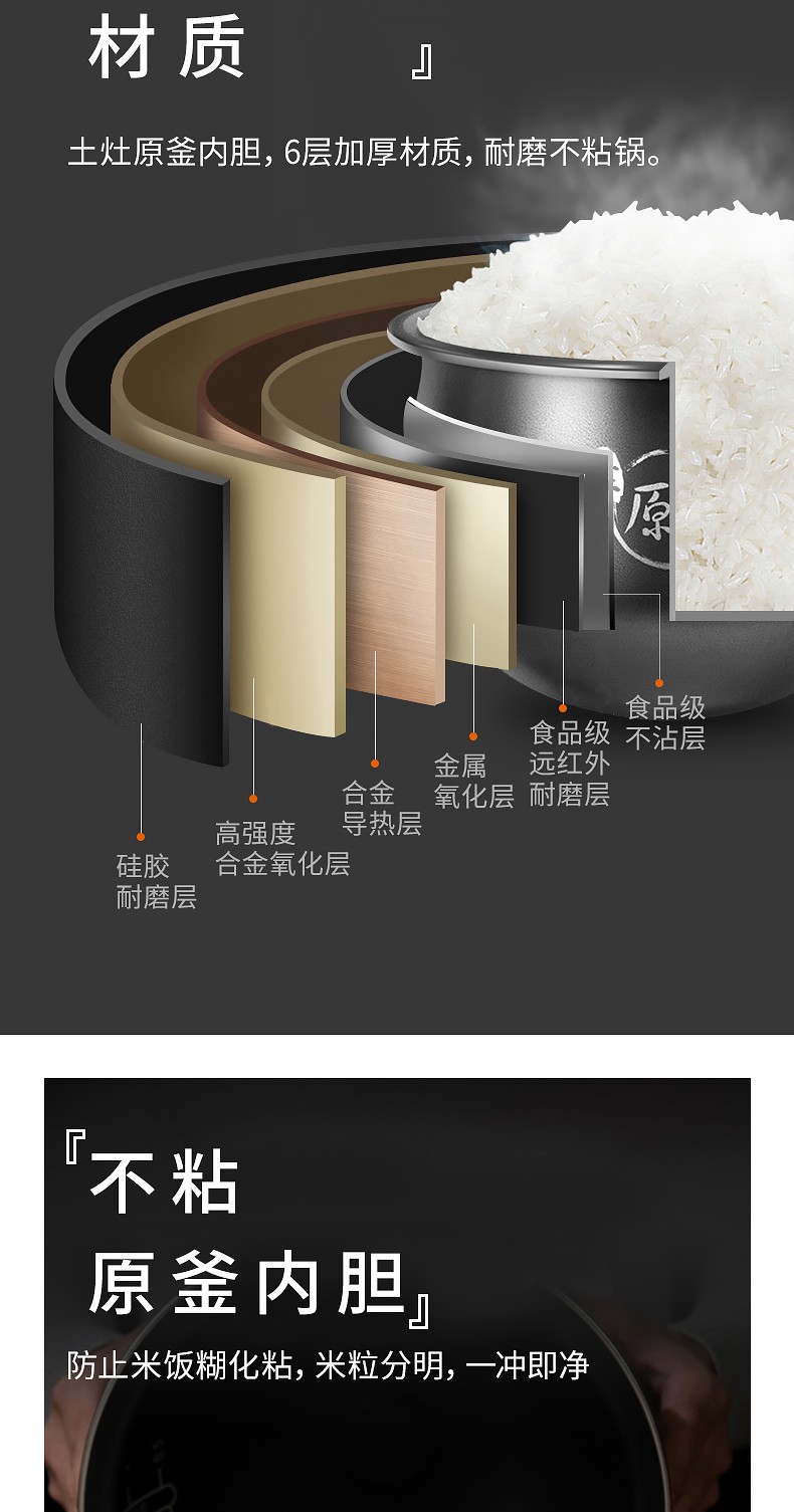 商品名称:九阳电饭煲5L大容量家用智能柴火饭煮饭锅正品50FY808