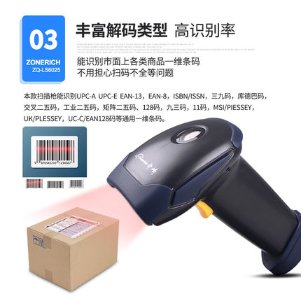 商品名称:中崎ZQ-LS6025条形码扫描枪扫码枪超市收银有线快递专用巴把枪器
