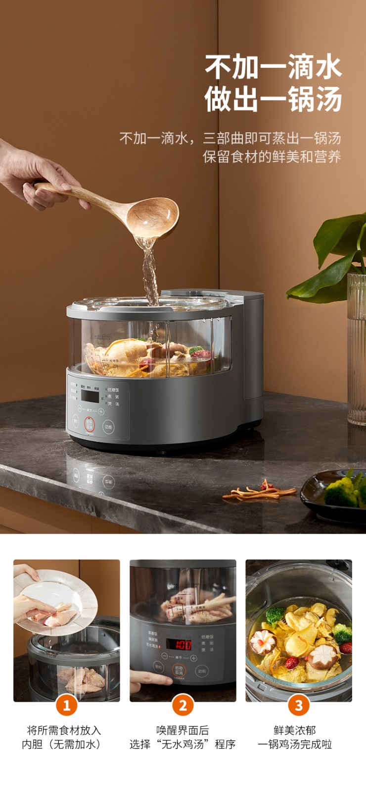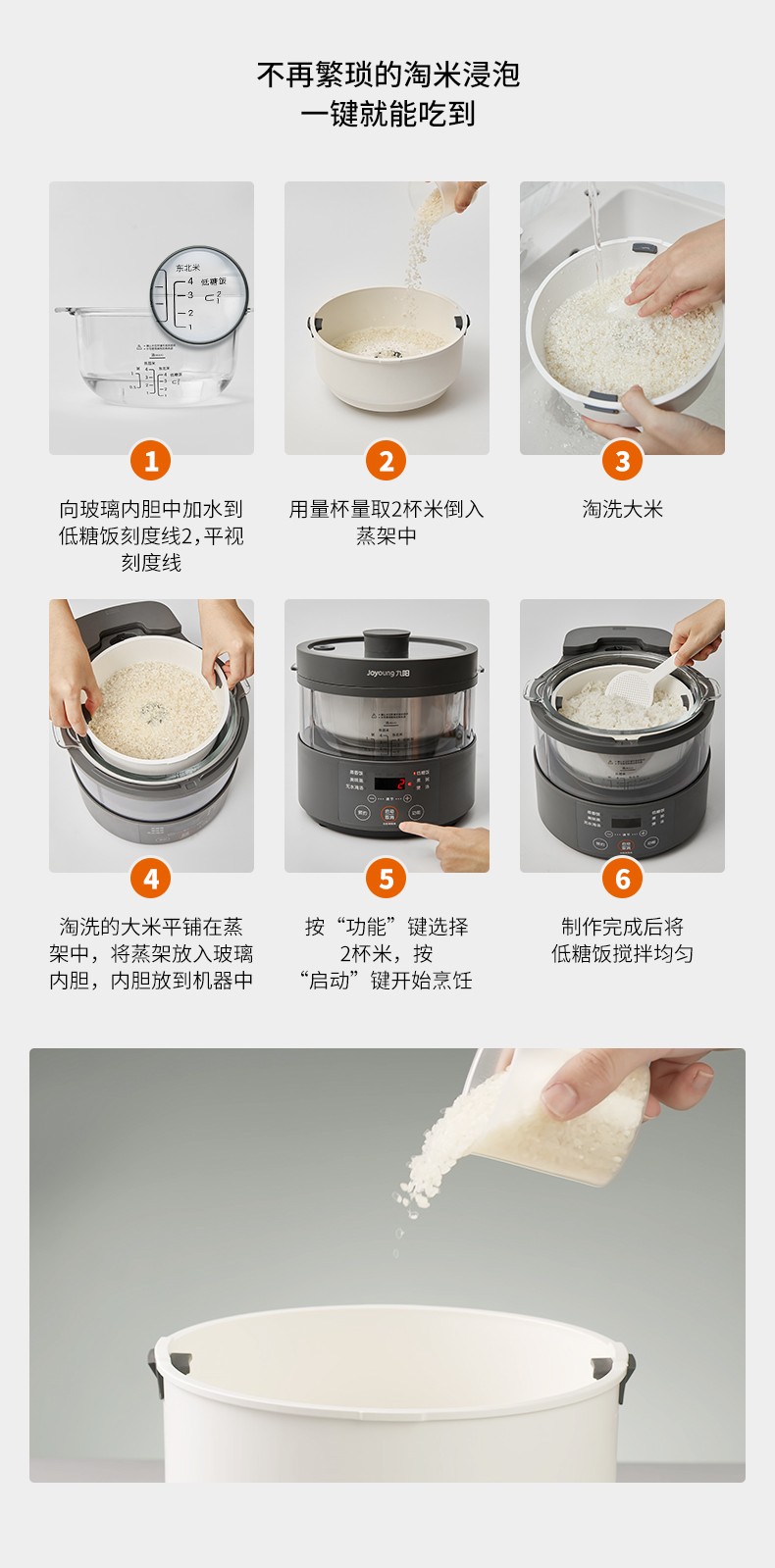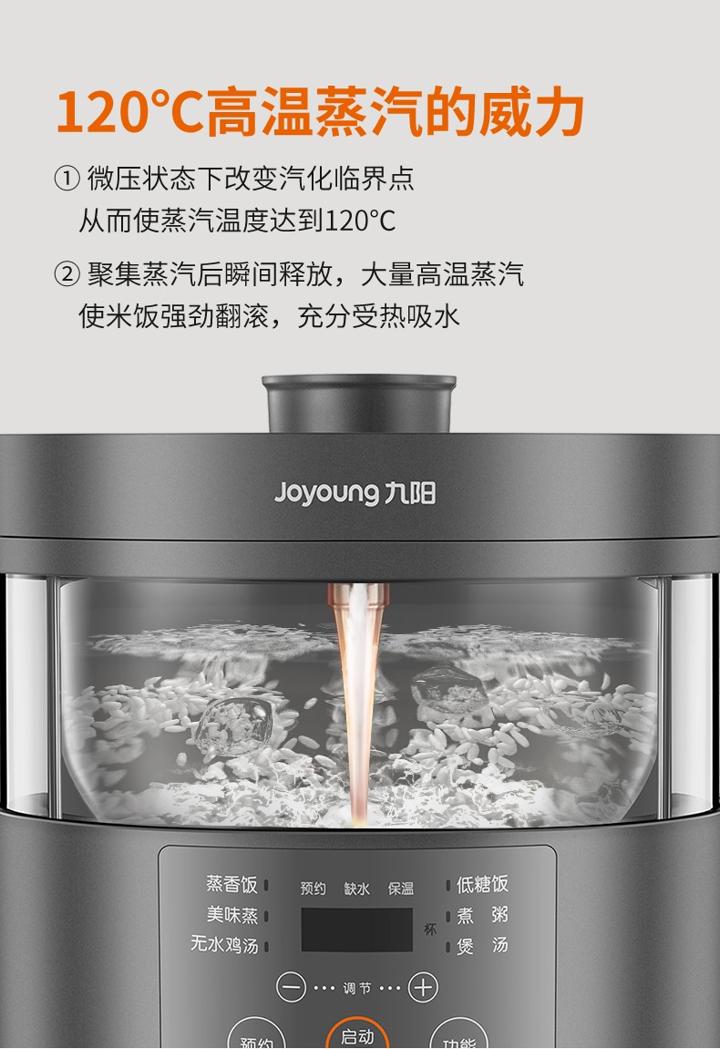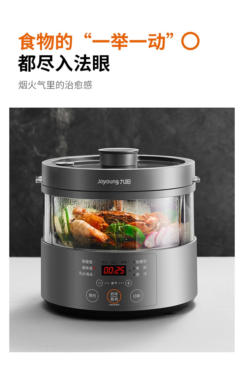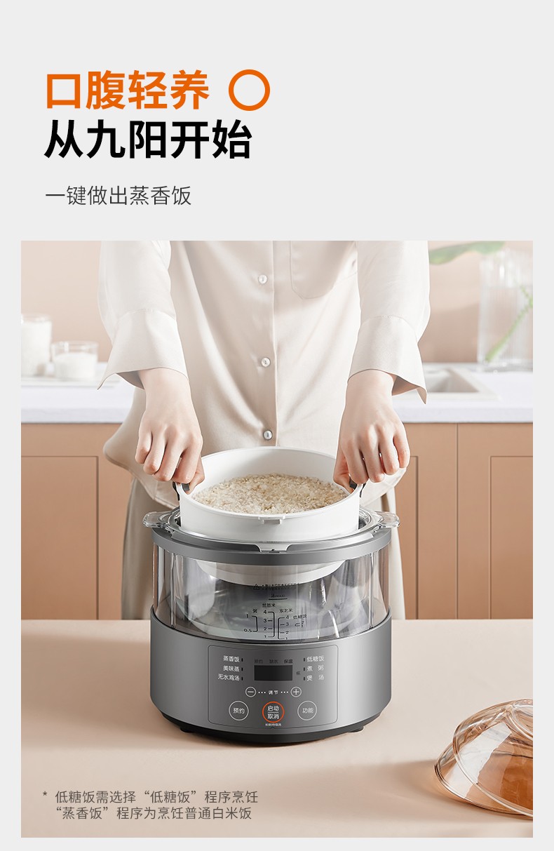 商品名称:九阳蒸汽电饭煲多功能家用3L智能玻璃内胆升降锅正品S160