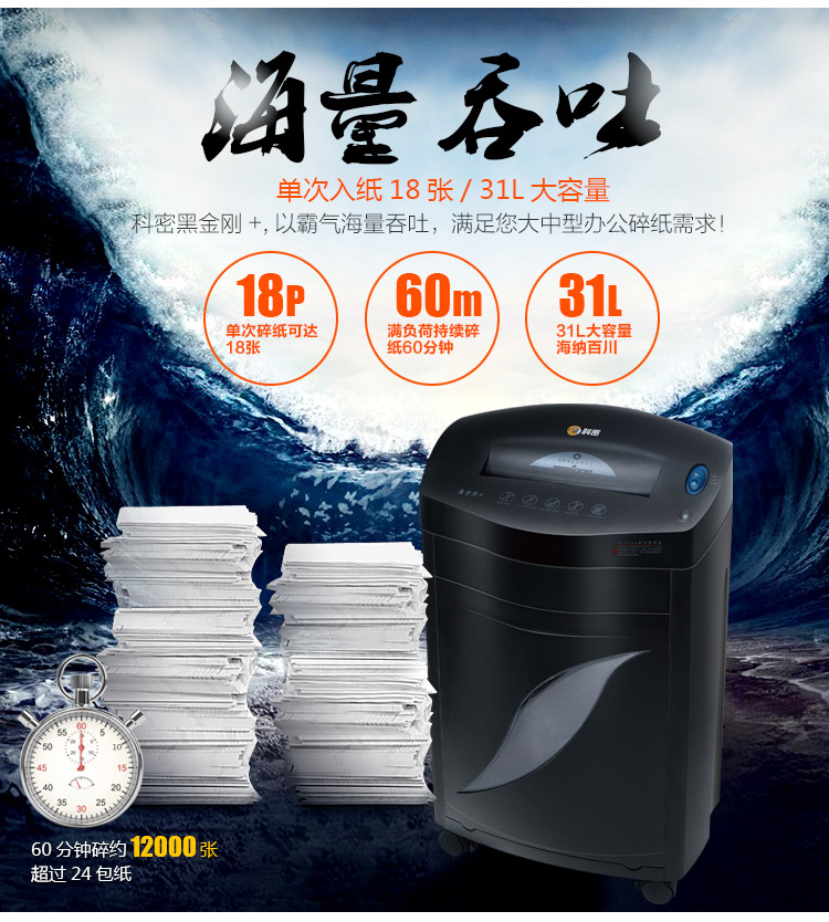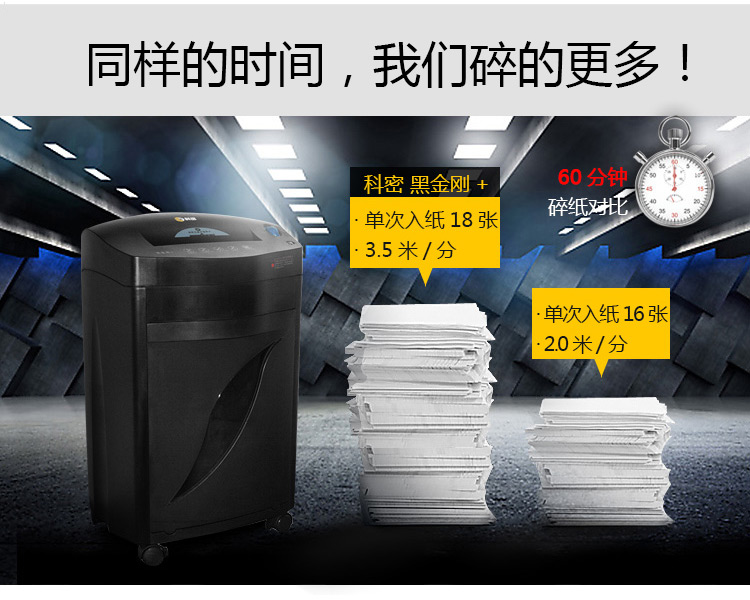 科密黑金刚+ 60分钟18张碎卡碎光盘书钉回形针 商用大功率大量碎纸 电动家用工业A4废纸粉碎机办公碎纸机