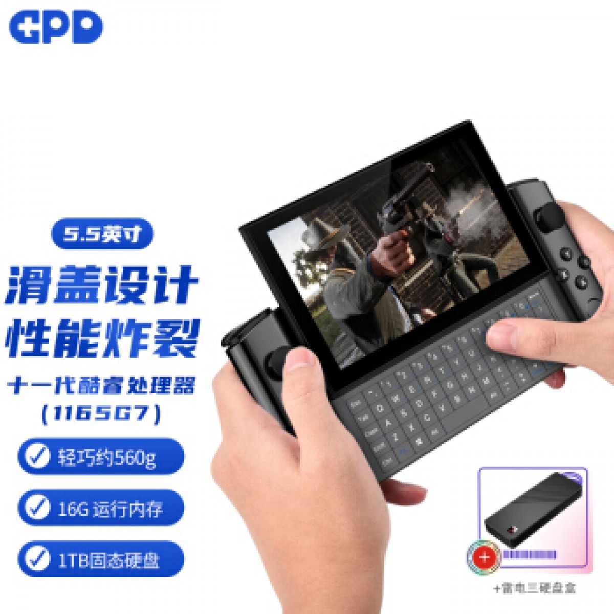gpd win3 十一代酷睿I5\\\\\\\\\\\\\\\\I7迷你手提笔记本 steam掌机笔记本 游戏娱乐掌上笔记本电脑 I7-1195G7 16G 1TB固态黑+硬盘盒*2