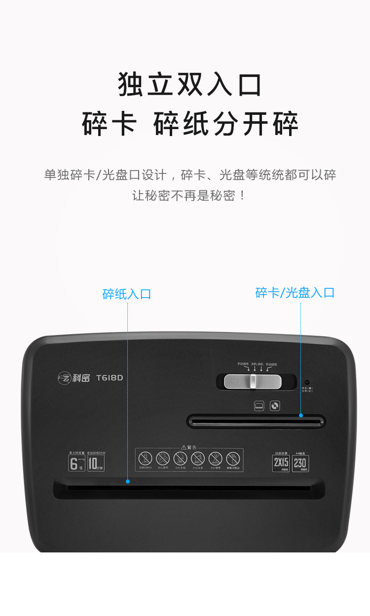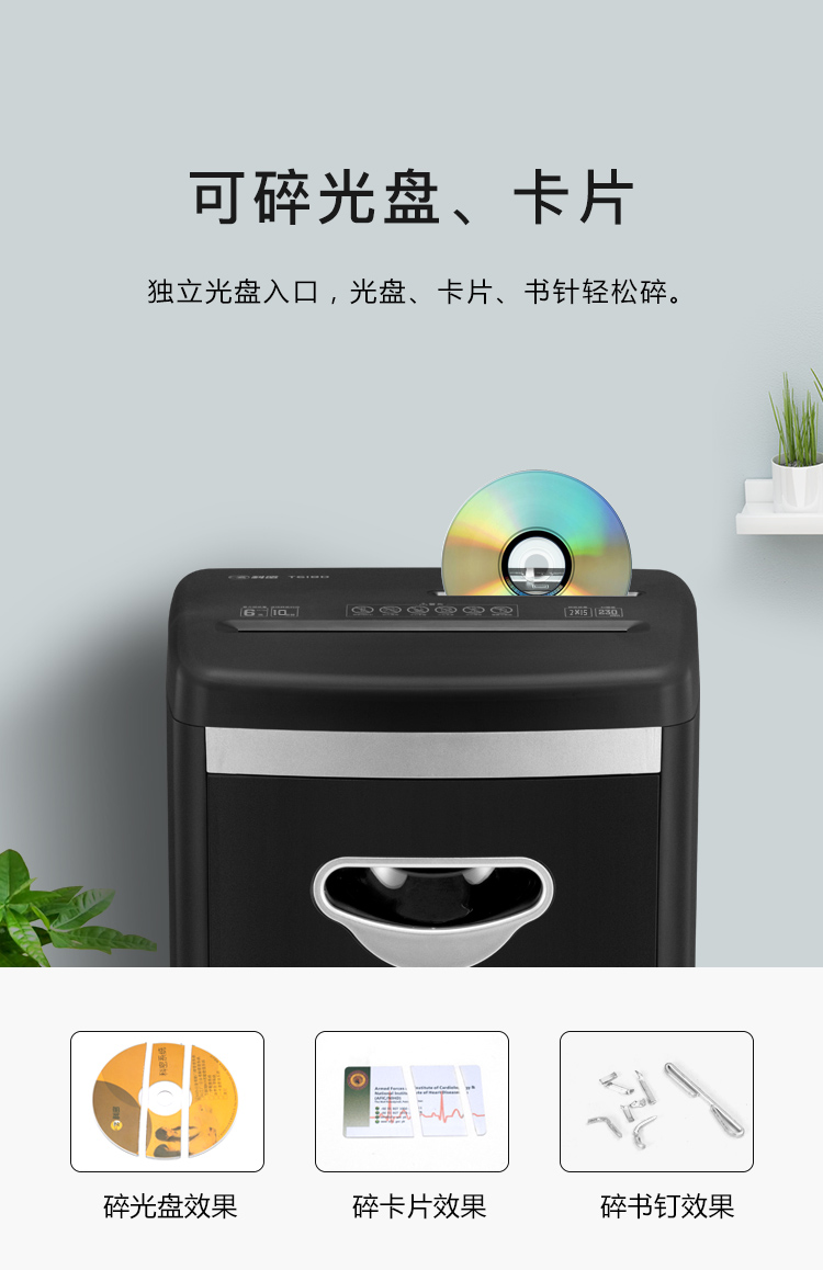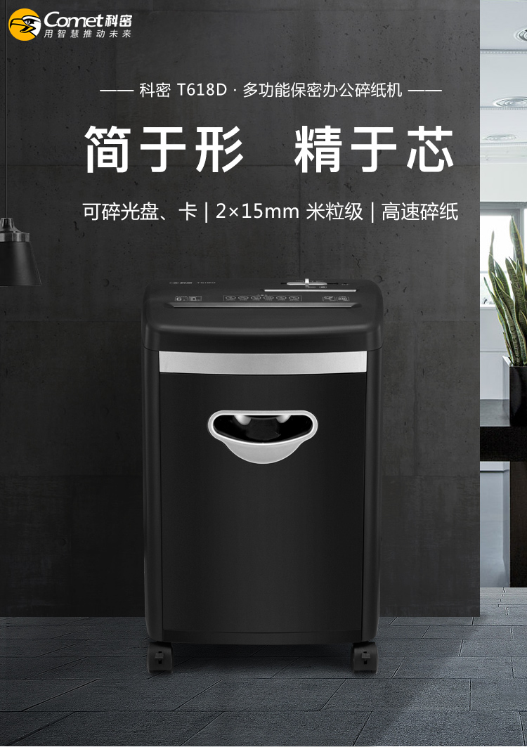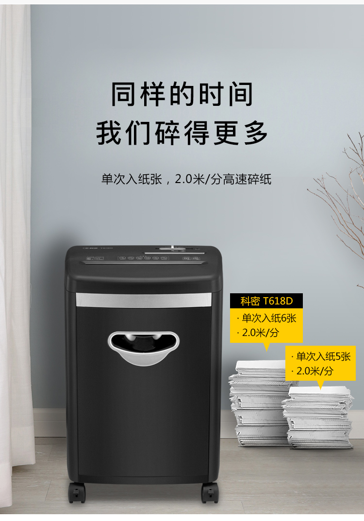 商品名称:科密新品办公碎纸机 商用大功率电动迷你保密家用颗粒文件粉碎机 碎光盘碎卡黑色款 T618D