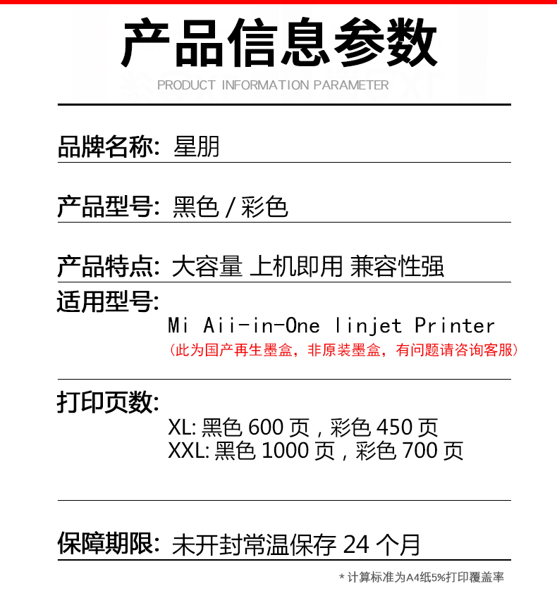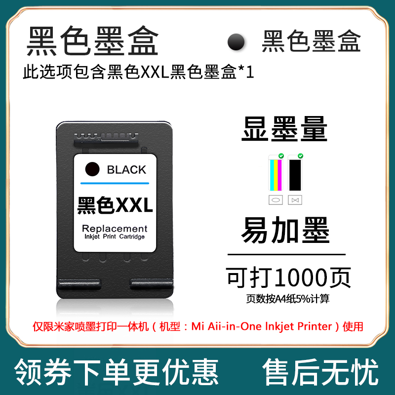 商品名称:星朋适用001小米打印机墨盒米家喷墨打印一体机Mi Aii-in-One lnkjetPrinter黑色彩色大容量墨水盒可加墨家用