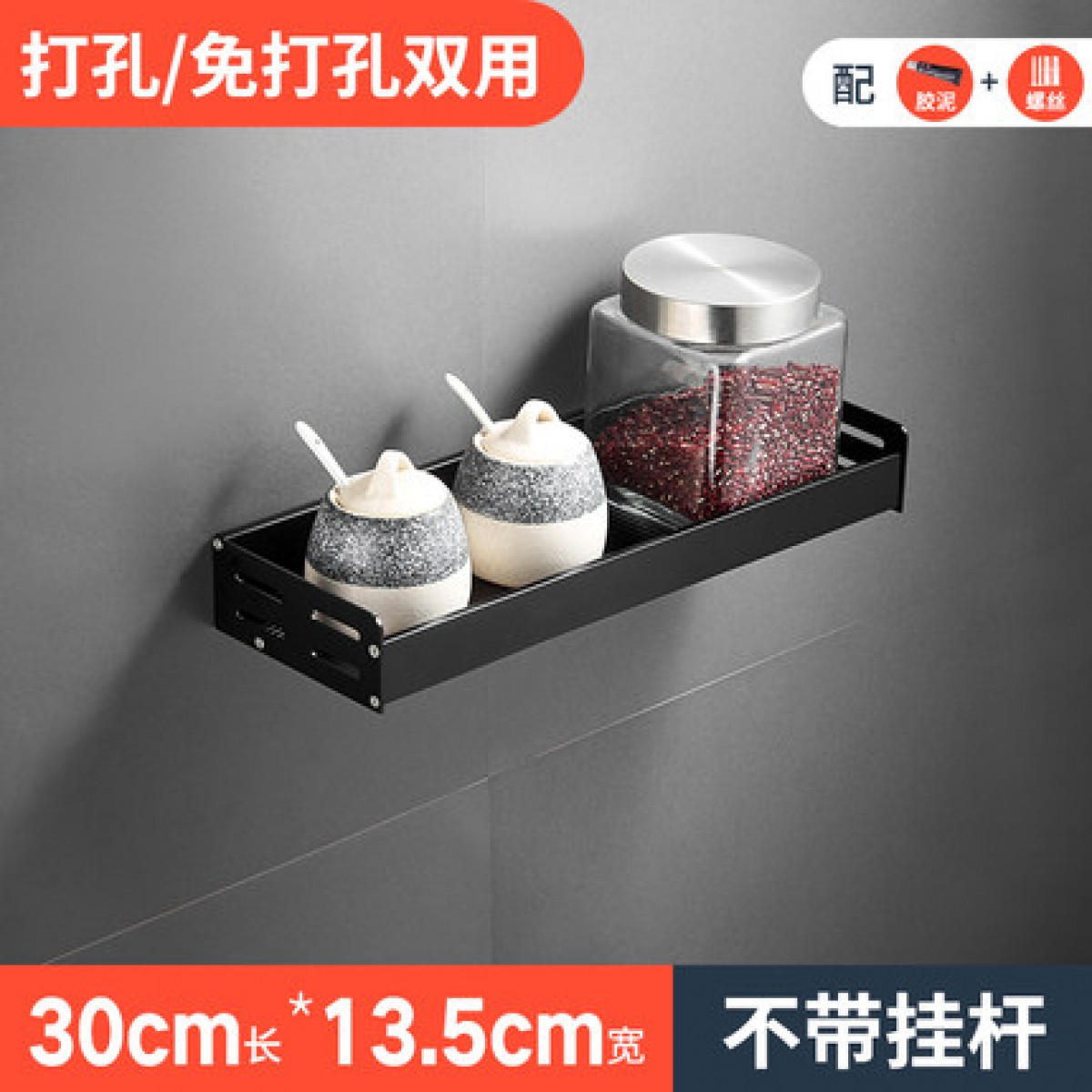 商品名称:厨房挂钩架免打孔 黑色s钩挂杆壁挂厨卫用品放厨具墙壁挂架置物架*2