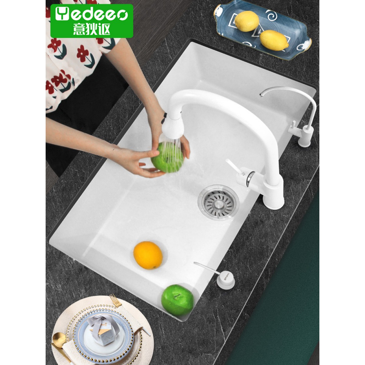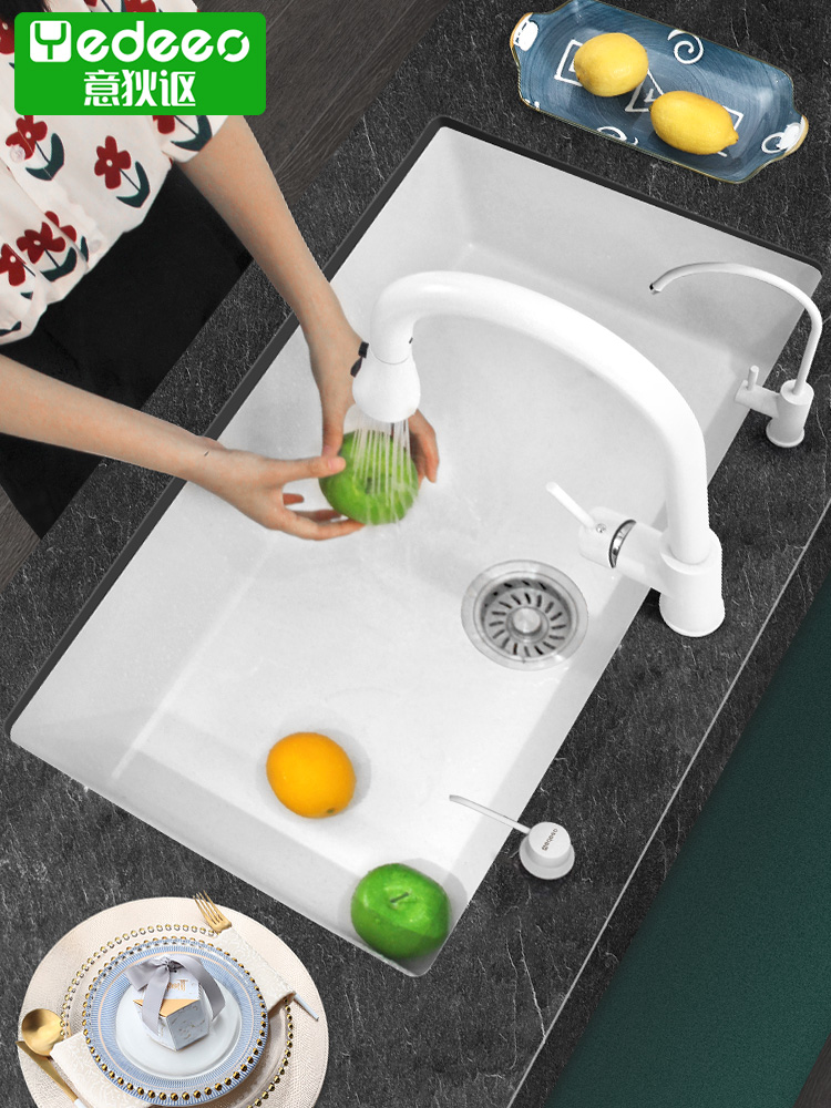 意狄讴麻白色石英石水槽燕麦单槽厨房洗碗槽下沉式台下洗菜盆套餐