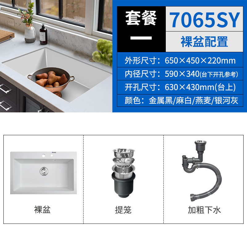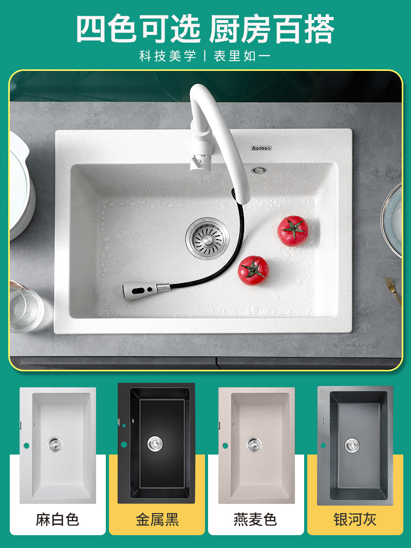 商品名称:意狄讴麻白色石英石水槽燕麦单槽厨房洗碗槽下沉式台下洗菜盆套餐