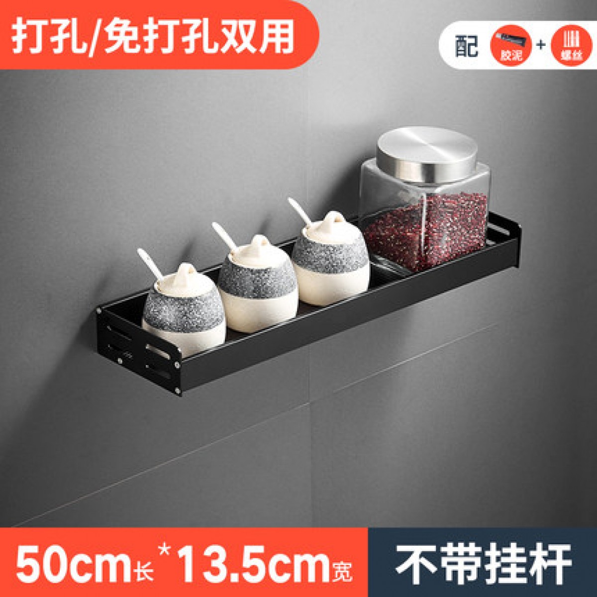 商品名称:厨房挂钩架免打孔 黑色s钩挂杆壁挂厨卫用品放厨具墙壁挂架置物架*2