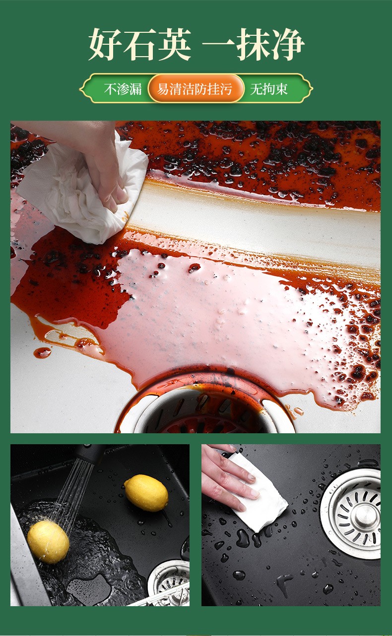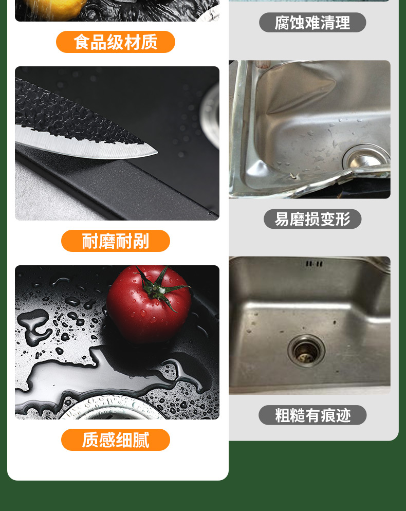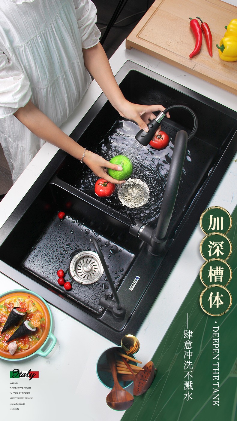 商品名称:意狄讴黑色厨房石英石花岗岩水槽洗菜池洗碗槽水池大双槽台下盆