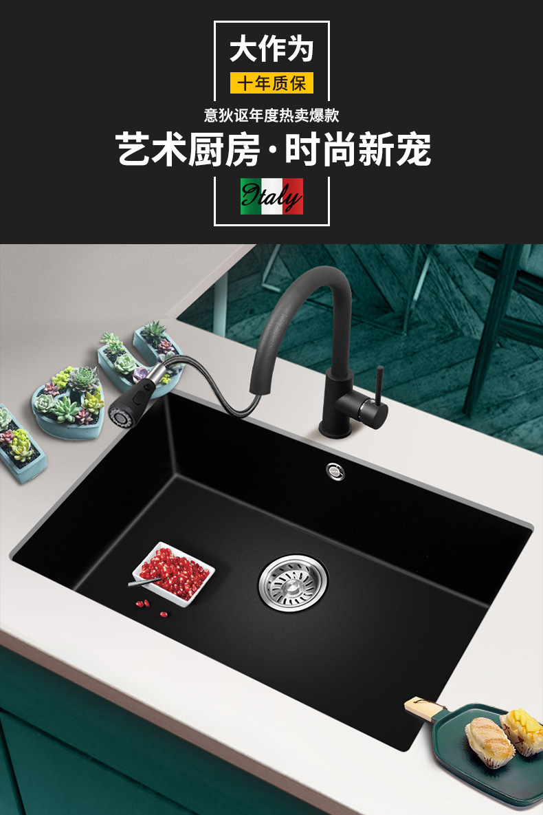 商品名称:意狄讴石英石水槽单槽厨房洗菜盆7070SY花岗岩台下盆嵌入式套餐