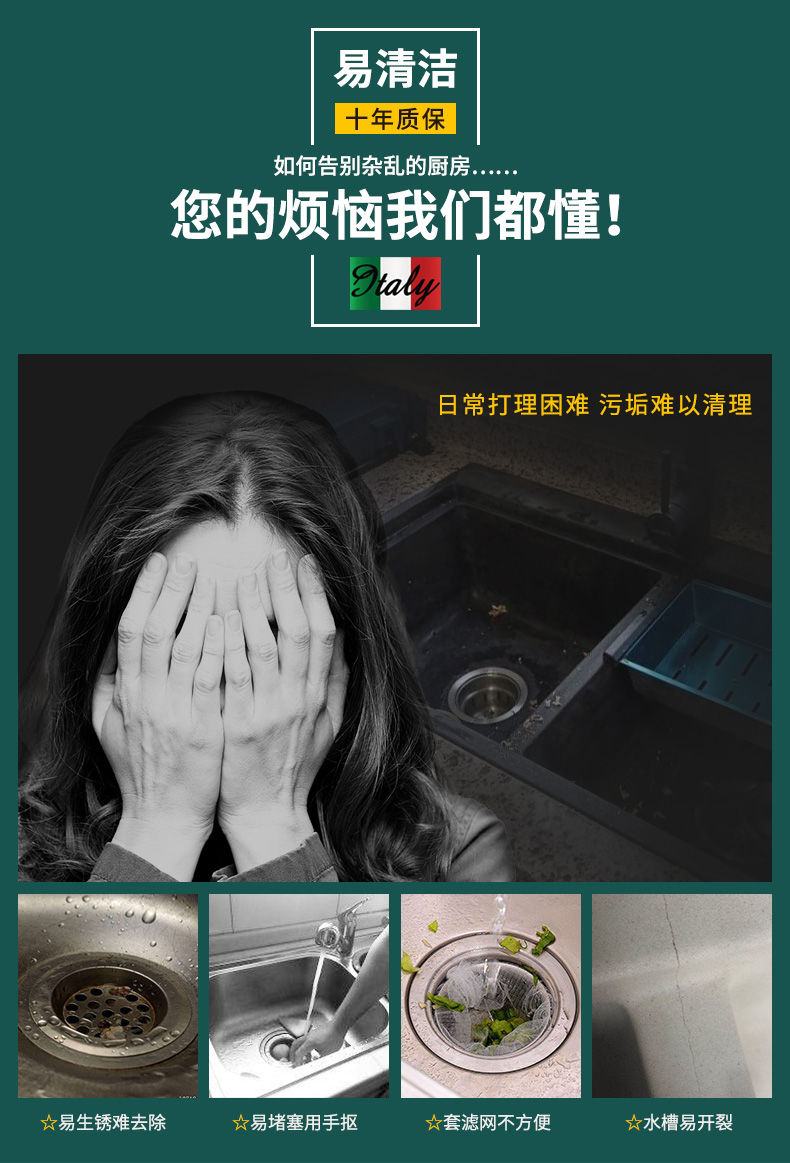 意狄讴石英石水槽单槽厨房洗菜盆7070SY花岗岩台下盆嵌入式套餐